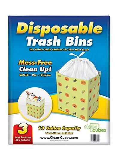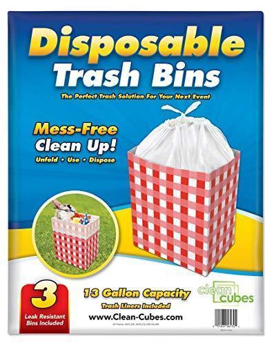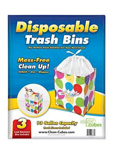 Clean Cubes 13 Gallon Disposable Trash Cans & Recycling Bins, 3 Pack (White)