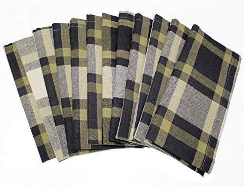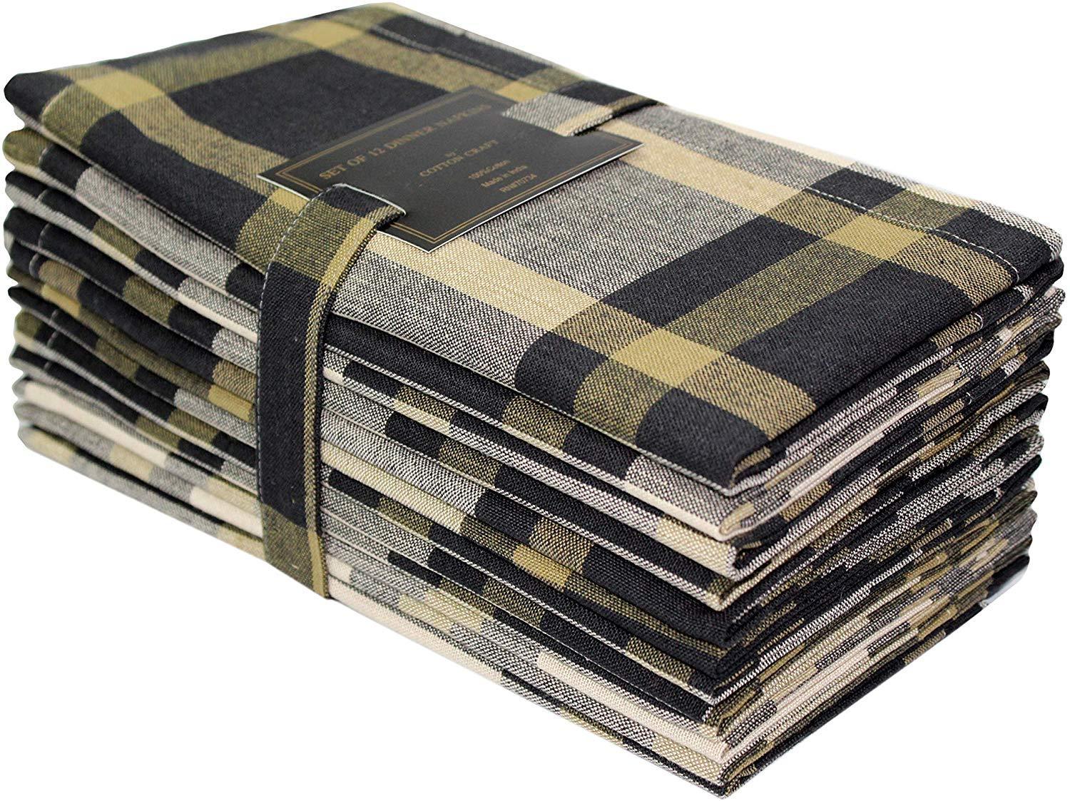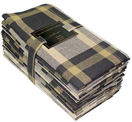 COTTON CRAFT 12 Pack 100% Cotton Checks Oversized Dinner Napkins – Black Beige - Size 20x20