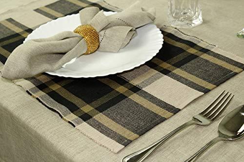 100% Cotton Imported Set contains 1 Dozen Oversized Check Black-Beige Napkins - Tailored with Mitered corners and...