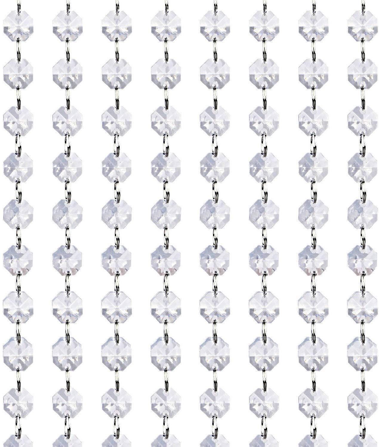 Crystal Acrylic Gems Bead Garland Strands, KinHom 16 Feet Hanging Clear 14mm Daimond Beads Chain Garlands for Manzanita Tree Centerpiece, Chandelier Bead Lamp Chain, Christmas/Wedding Party Decoration
