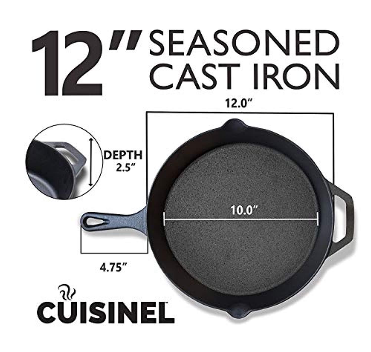 • TRUE COOKING VERSATILITY – The Cuisinel cast iron skillet pan can be used for frying, baking, grilling, broiling, braising, and sautéing meats, vegetables and more!