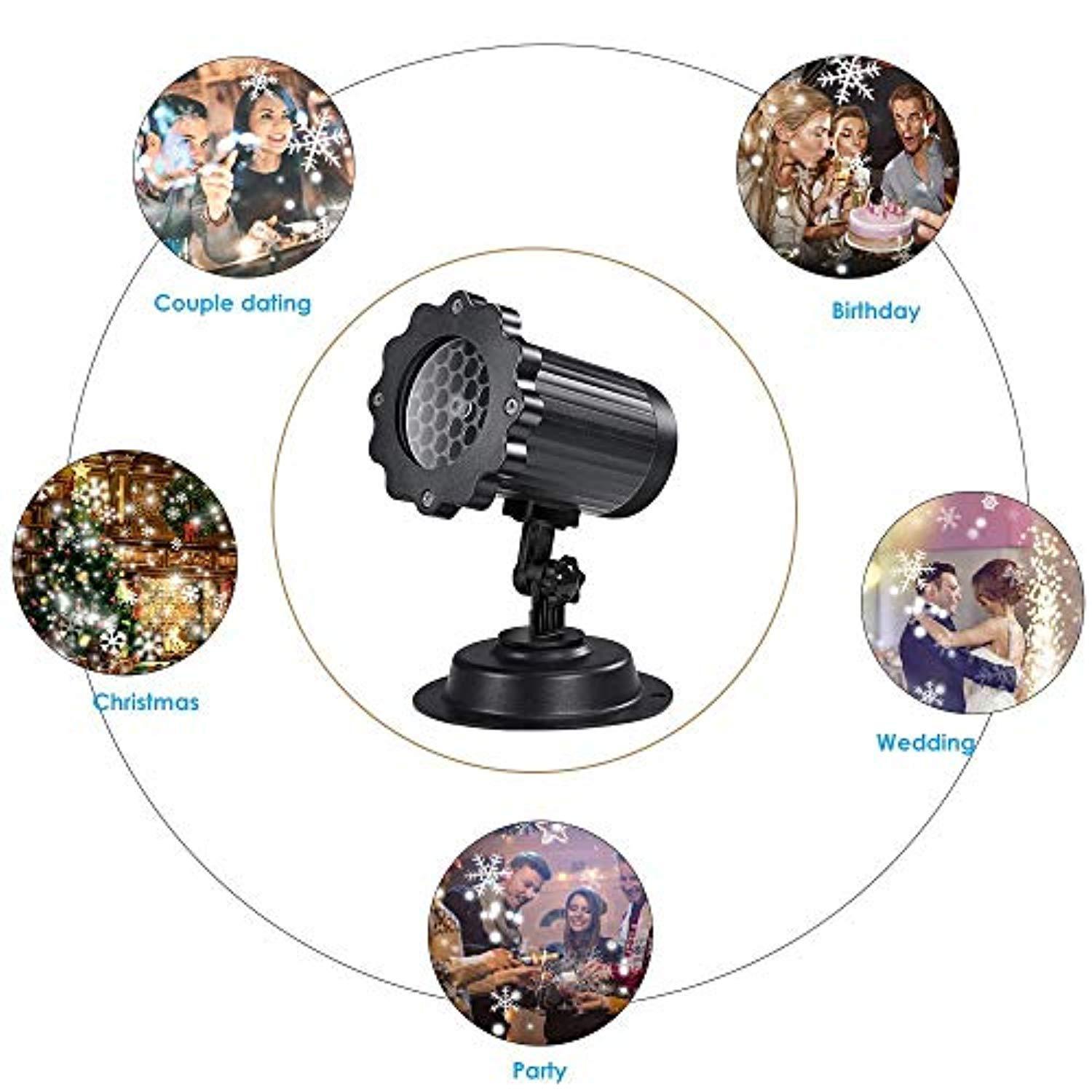 • ❄【More Brighter and Clarity】: Upgraded Version Interchangeable Rotating Snowflake & Snowfall Projector Light is the Newest Unique Design, Made of High Luminous Efficiency Led Chip Which More Brighter and Clarity, Creating More Realistic and Vivid Snowy Atmosphere in Christmas Or Other Holidays and Party!