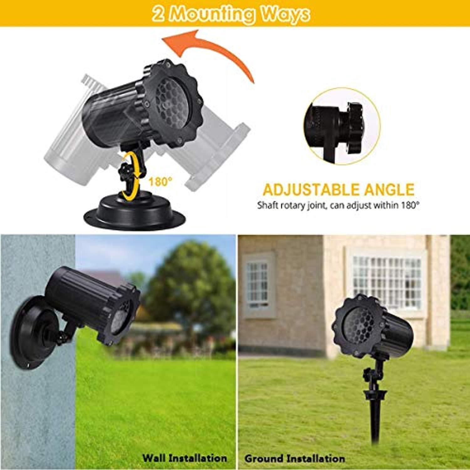 • ❤【Control of 4 Modes Perfect Lights】: Led Snowflake Snowfall Projector Outdoor Christmas Light With Speed Control of 4 Modes: Flash+(Flash Speed Up), Flash-(Flash Slow Down), Motor+(Led Speed up), Motor-(Led Slow Down/Steady On). The Adjustable 180° Angles Make it Convenient to Fix the Light Anywhere to Perfect Spot.
