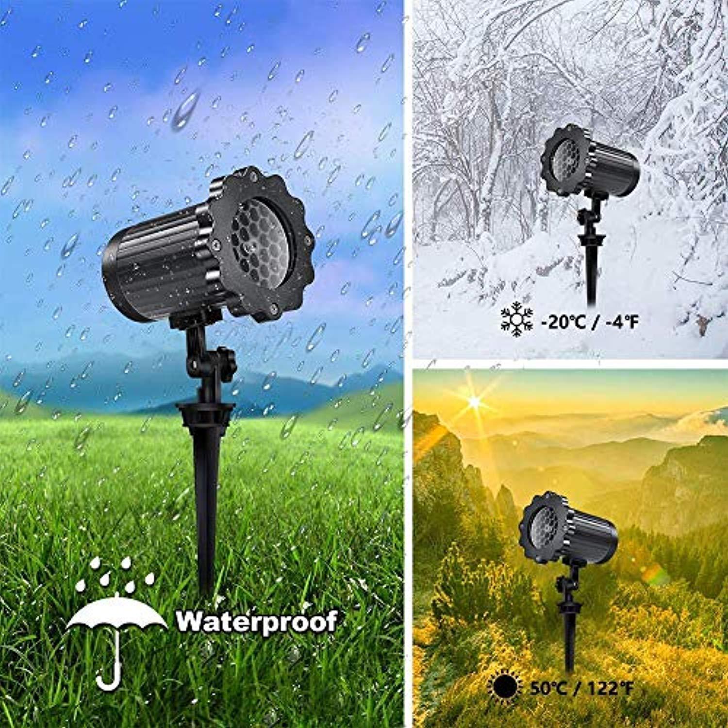 • ☂【Waterproof Anti Fog More Safer】:This Christmas Projector Light Made of ABS Plastic, Class 2 Safety Light (Waterproofing Grade IP65 Light Housing and IP44 Power Adapter), Enable to Withstand any Kind of Weather including rain, snow, dust and intense sunlight. Built-in Waterproof Rubber Ring of Lens to Anti-Fog can Reach Better Show Effect. Energy Efficient, Long Lasting, and More Safer for the Eyes.