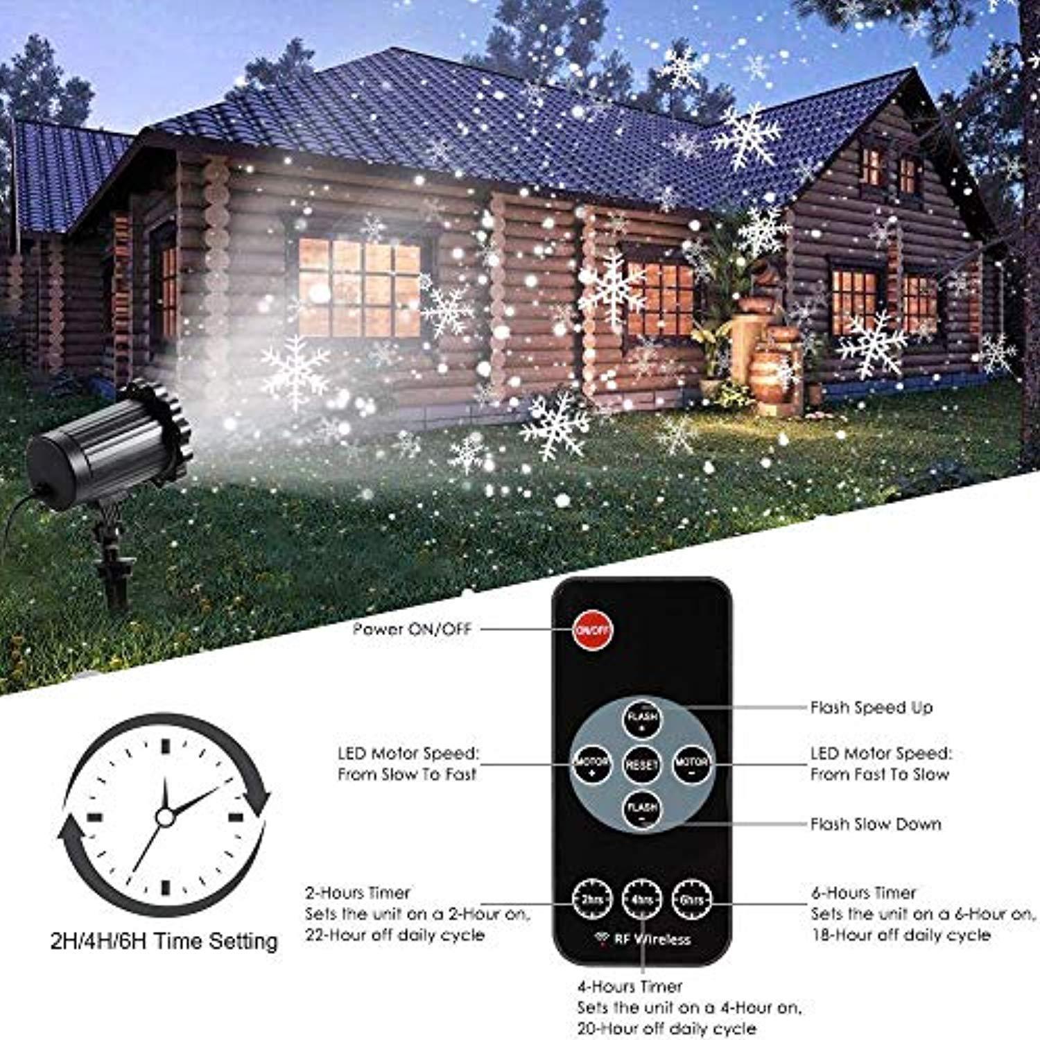 Decoration Projector Lights, Christmas Projector Lamp with Rotating Snowflake & Snow Falling, Remote Timer 4 Modes IP65 Waterproof LED Landscape Projector for Christmas Halloween Birthday Wedding Part