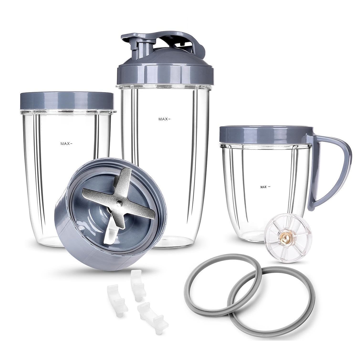 • ◆ Contains improved Extractor nutribullet Blade, Huge Cup (32oz) Tall Cup (24 oz), Short Cup (18 oz), Lid Ring, Handled Lid Ring and Flip-Top To-Go Lid, Top Gears, 2 gaskets and 3 Shock Pad