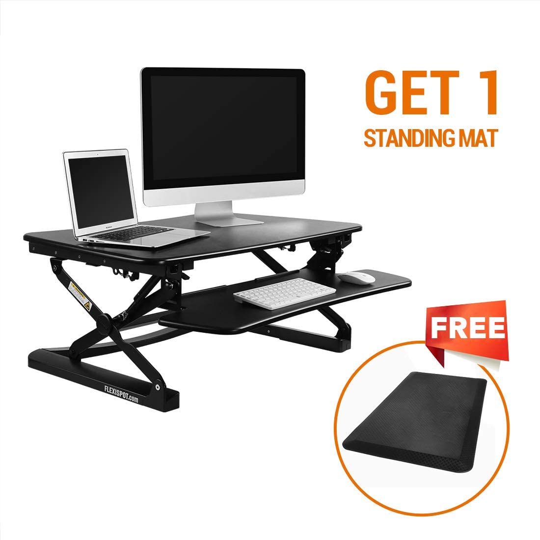 FLEXISPOT Desktop Workstation Combo, 35 Standing Desk Riser with Free Anti-Fatigue Comfort Kitchen Floor Mat-Black by Defy Desk