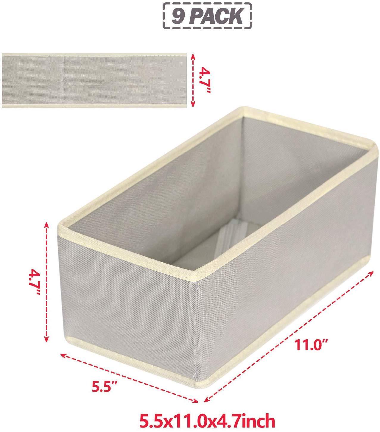 • Made from non-woven breathable fabric and Cardboard which is mold-proof, excellent permeability and long lasting appeal. Dresser drawer organizer measurements are: 11" X 5.5" X 4.7". Color: Gery. Set of 9.