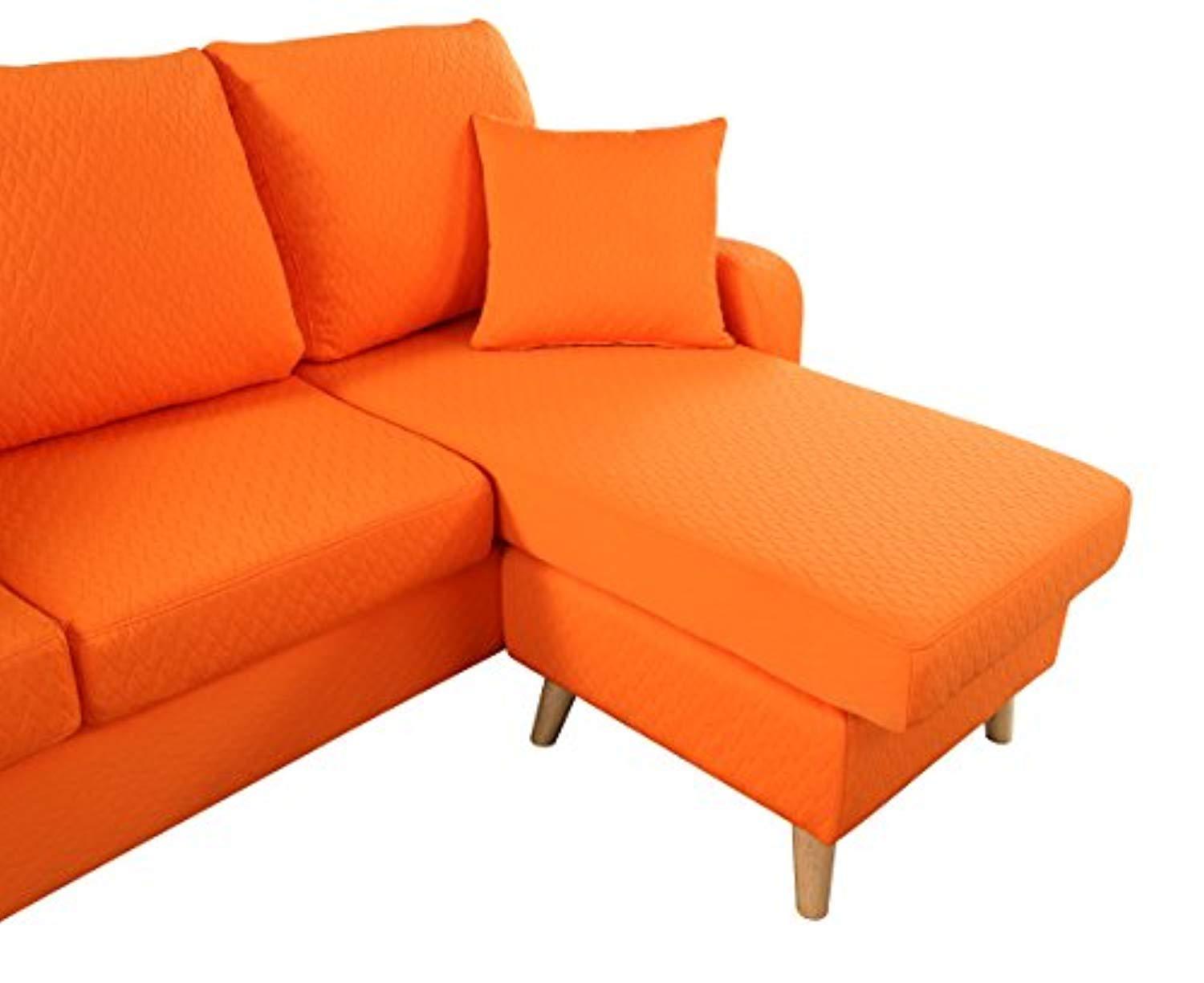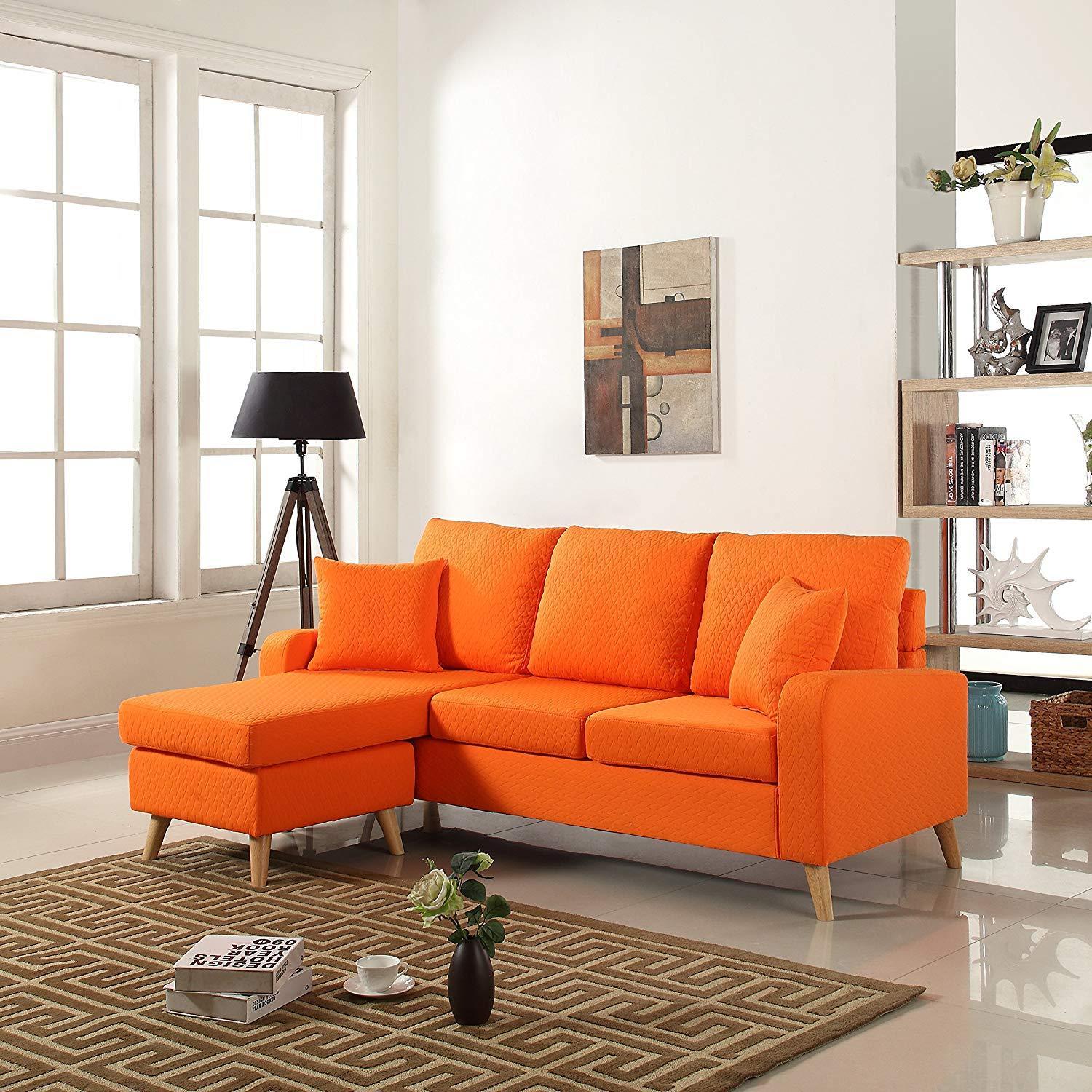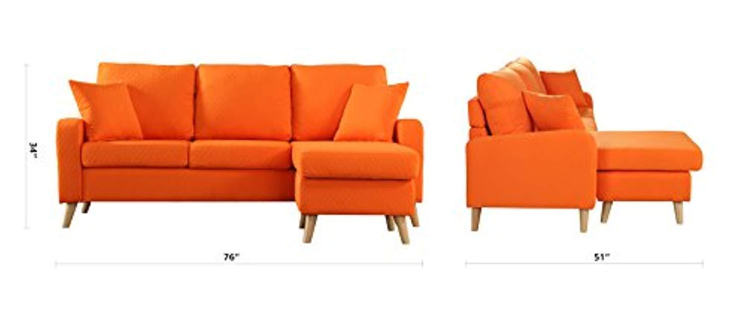 Divano Roma Furniture Mid Century Modern Linen Fabric Small Space Sectional Sofa Reversible Chaise (Orange)