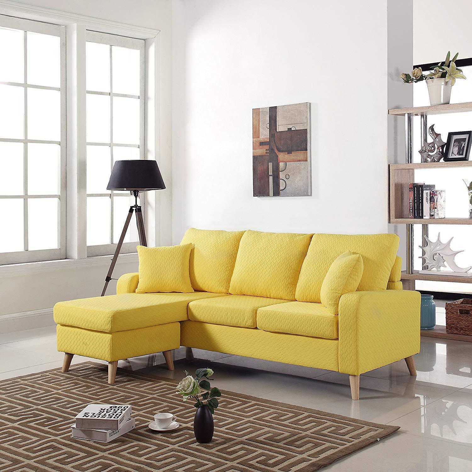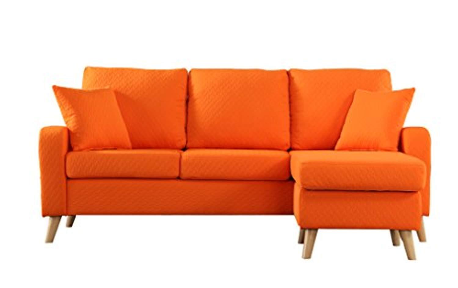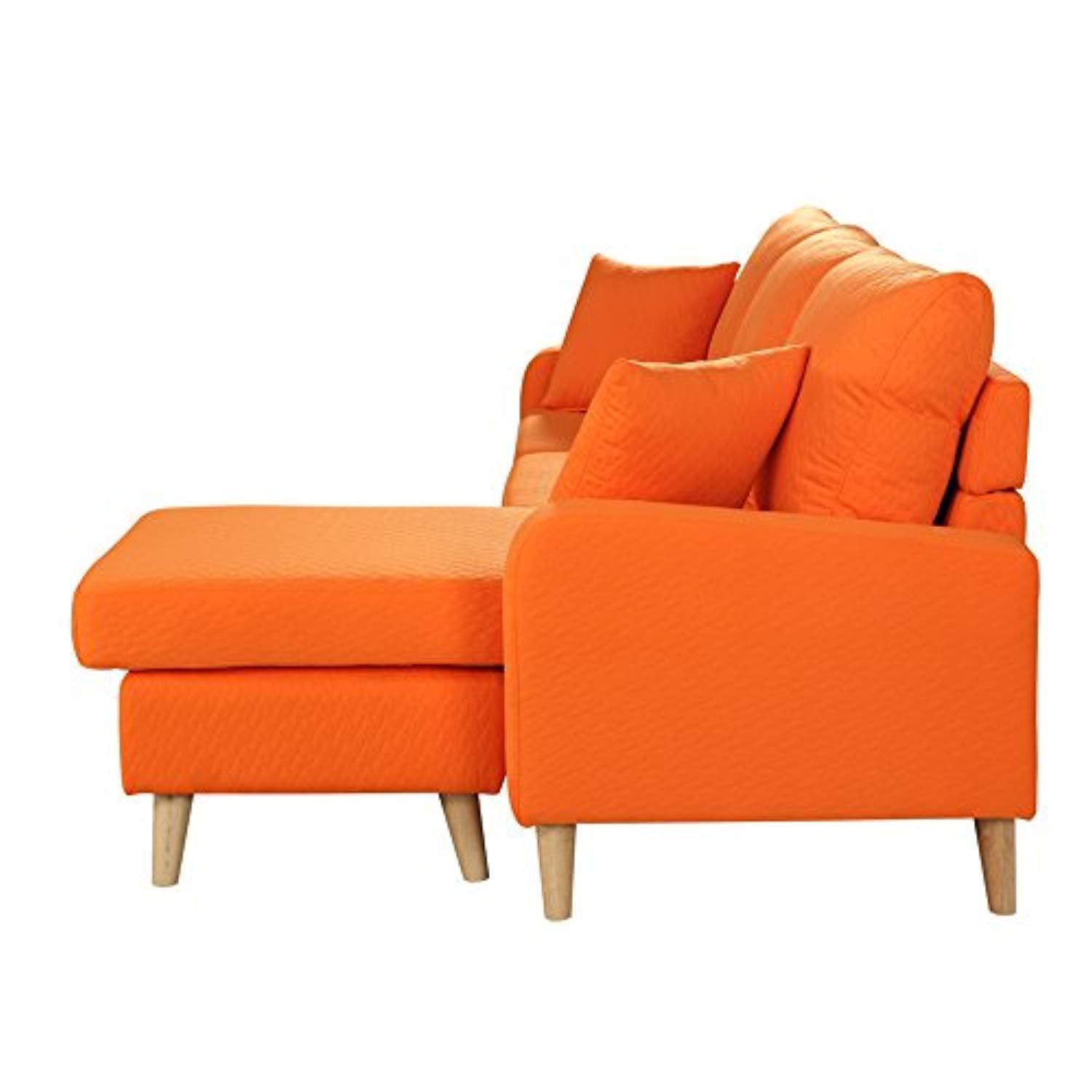 Divano Roma Furniture Mid Century Modern Linen Fabric Small Space Sectional Sofa Reversible Chaise (Orange)