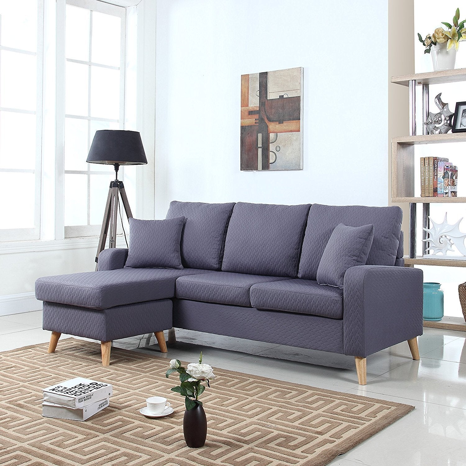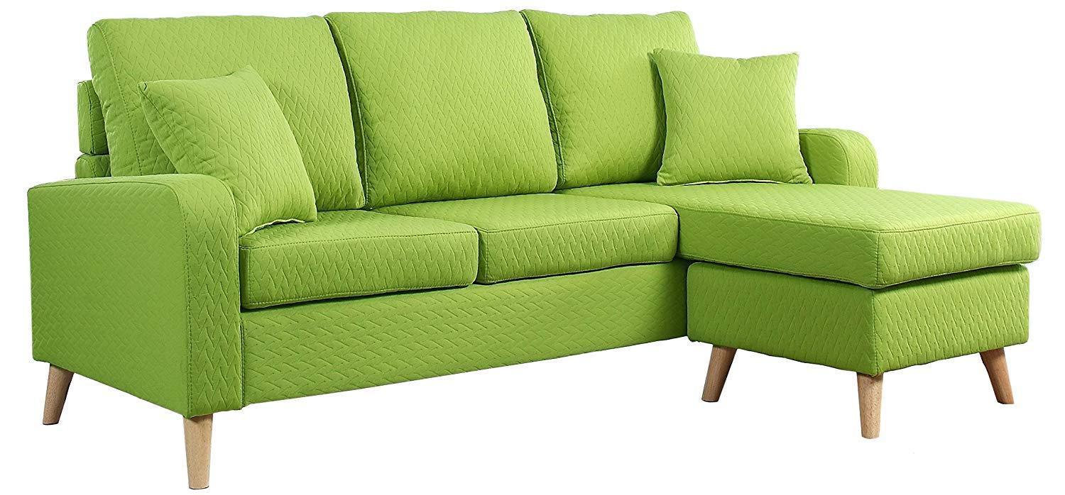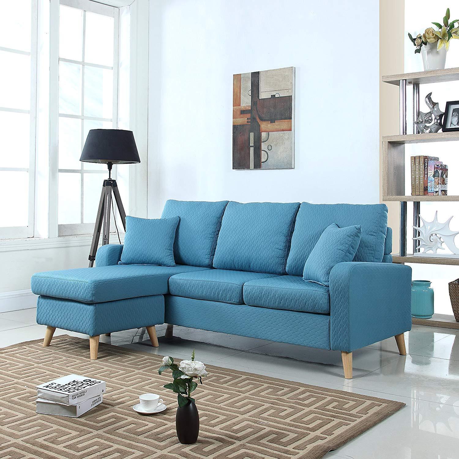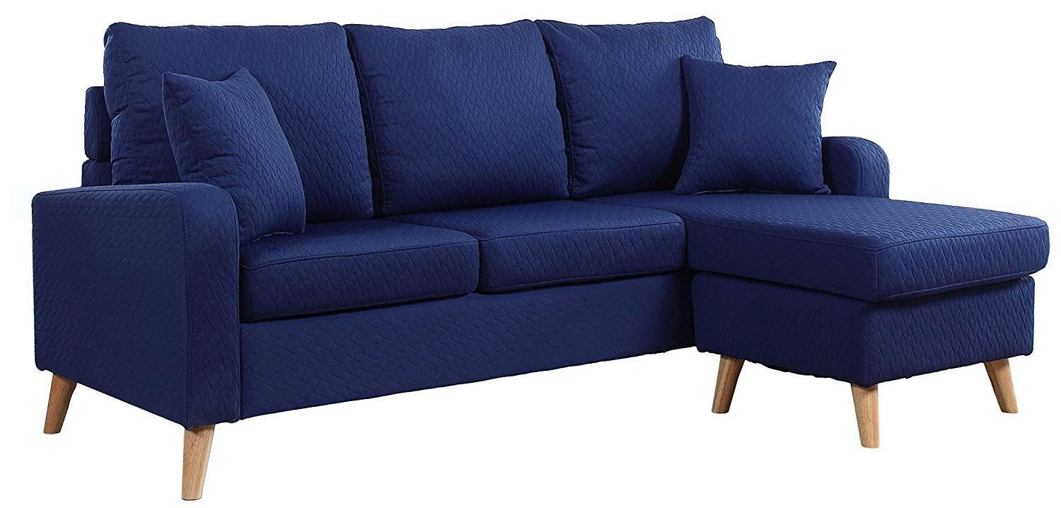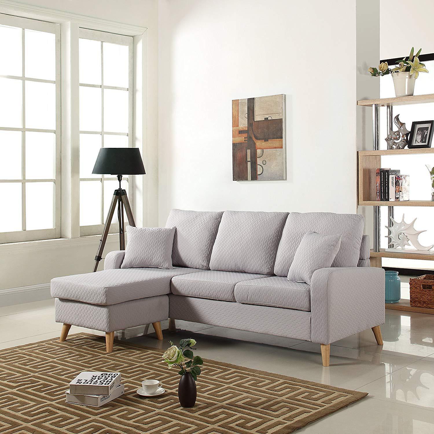 • Mid-century modern linen fabric with quilted stitching sectional sofa with reversible chaise lounge in a variant of colors