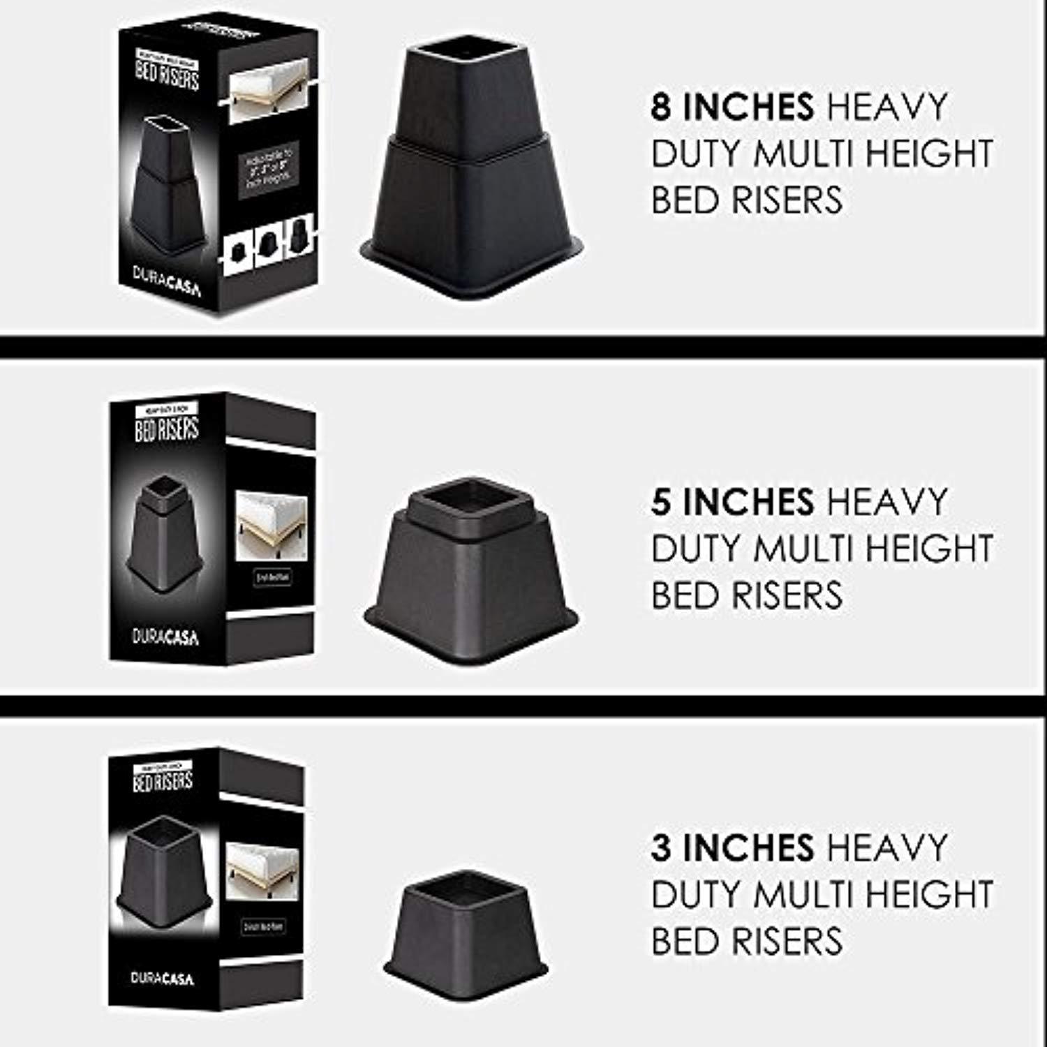 DuraCasa Bed Risers - Raises Your Bed or Furniture to Create an Additional 3 Inches of Storage! Reinforced New Heavy-Duty Design to Hold Over 2000 LBS! Desk, Sofa, and Chair Lift (Set of 4 Risers)