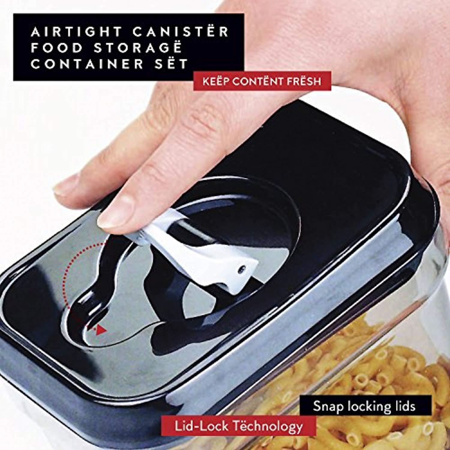 • GIVES AN ELEGANT LOOK ON THE COUNTER: With beautiful black lids and a clear body, the bulk rectangular plastic airtight container canister set spruces up your kitchen while allowing you to easily monitor the contents. It is also stackable to take full advantage of vertical space for your cabinet and pantry organization.