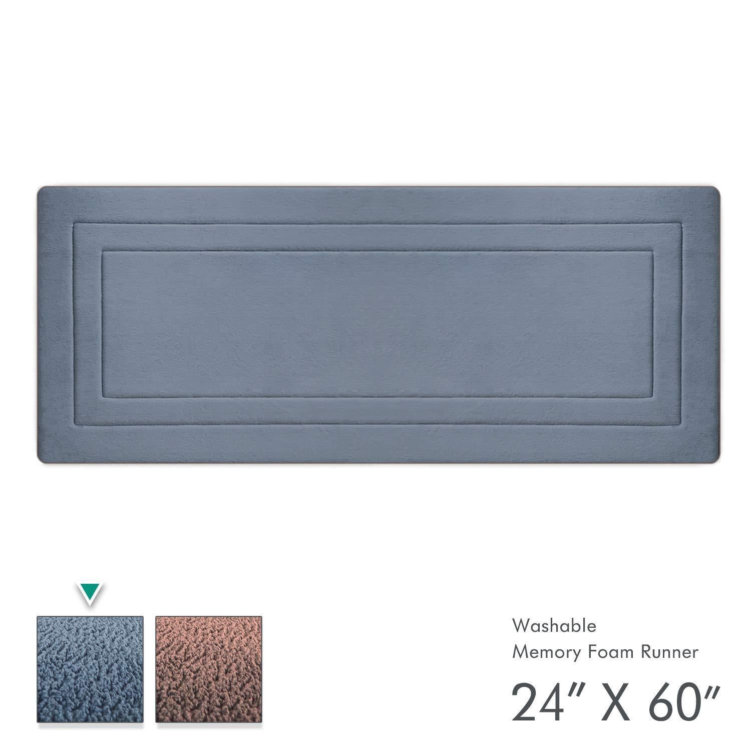 Ellendi Long Memory Foam Bath Mat and Kitchen Rug - Non-Slip Bathroom Runner, Soft and Absorbent, Washable, 24 by 60 Inches, Blue