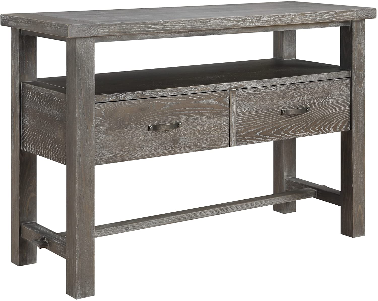Emerald Home Furnishings Paladin Rustic Charcoal Gray Dining Table with Self Storing Butterfly Extension Leaf And Farmhouse Trestle Base