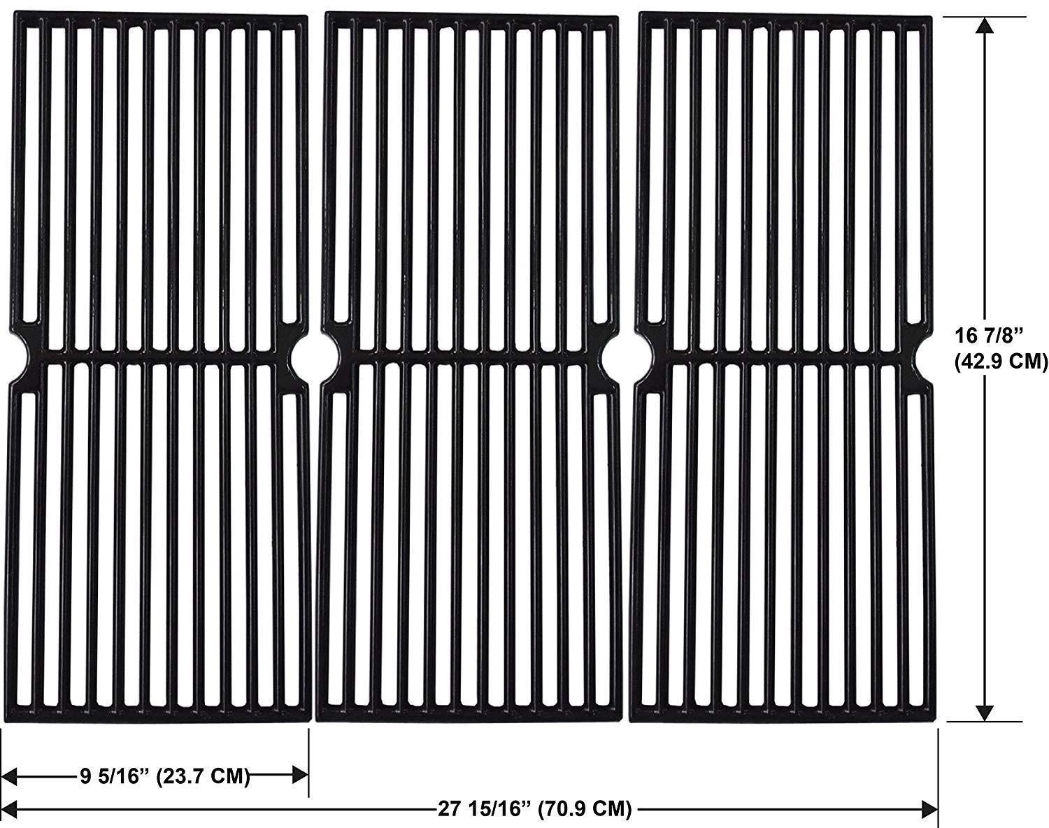 • Enamel Cast Iron Grids, set of 3, Dimensions: 16 7/8 x 9 5/16" For each unit, 16 7/8 X 27 15/16" For 3 units. Made of porcelain enamel cast iron.
