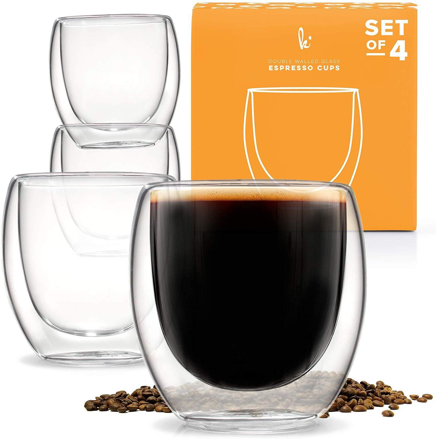 Espresso Cups Shot Glass Coffee Set of 2 - Double Wall Thermo Insulated