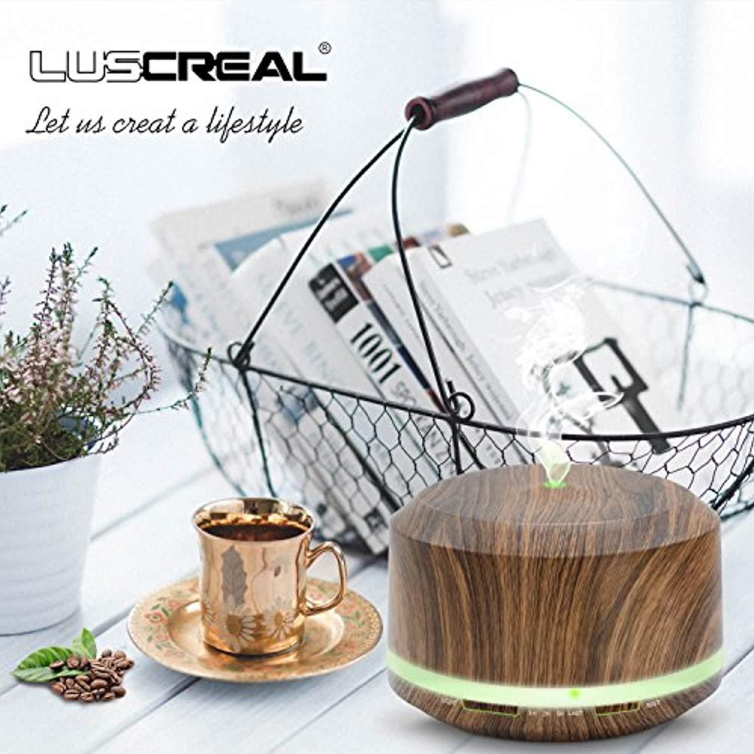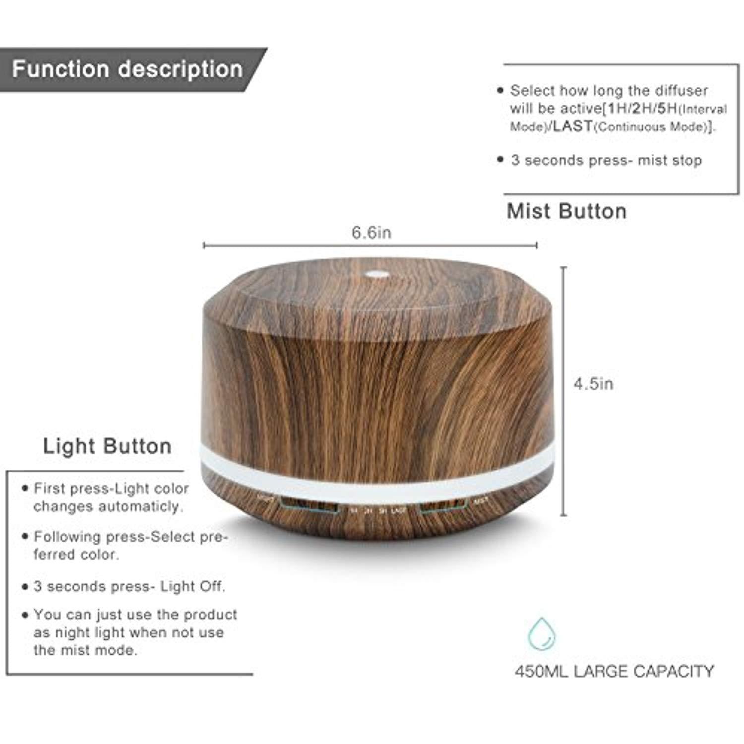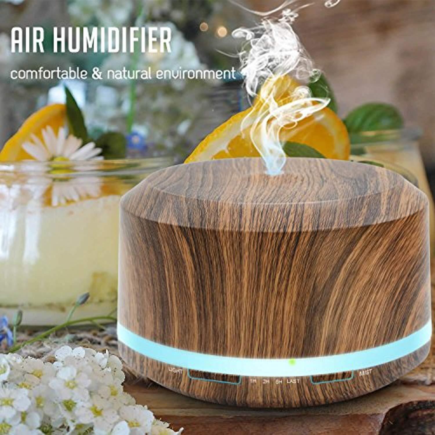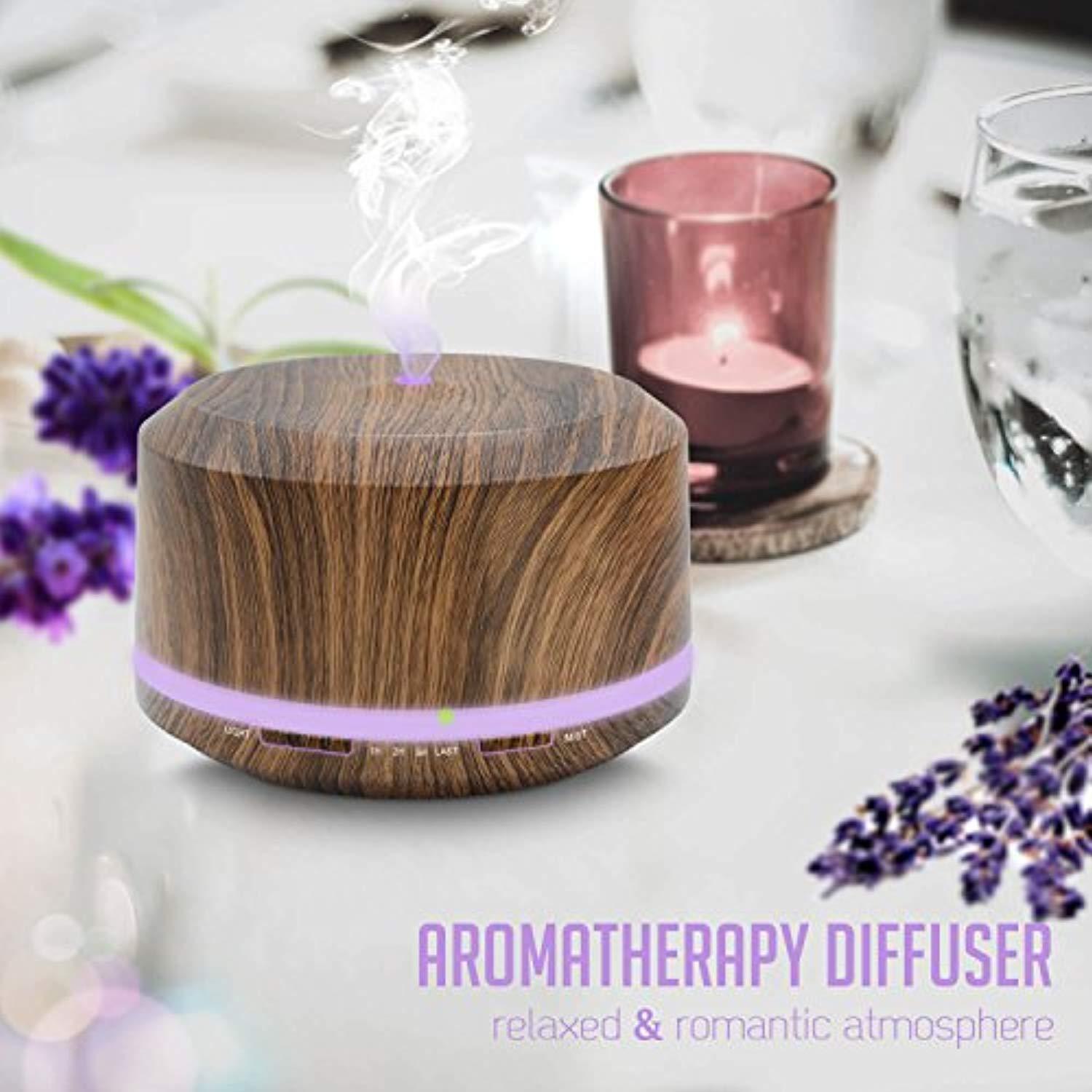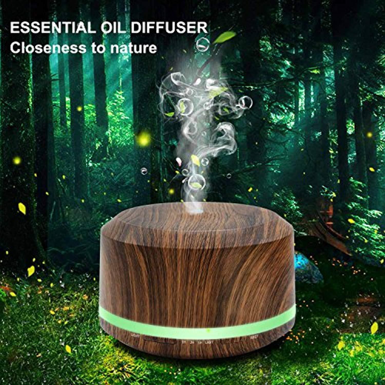 Essential Oil Diffuser 450ml, Dark Wood Grain Aromatherapy Diffusers and Air Humidifiers Set for Large Room - LUSCREAL Gift Idea