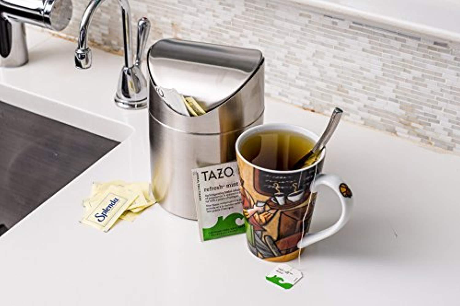 Estilo Mini Countertop Trash Can, Brushed Stainless Steel, Swing Top Trash Bin 1.5 L / 0.40 Gal
