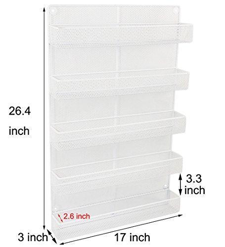 ESYLIFE 5 Tier Wall Mount Spice Rack Organizer Kitchen Spice Storage Shelf - Made of Sturdy Punching Net, White