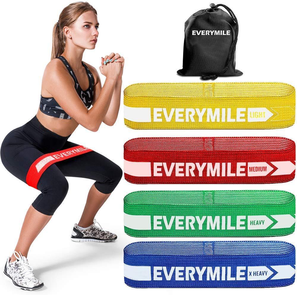EveryMile Resistance Bands for Legs and Butt, Fabric Exercise Bands Set Non-Slip Booty Bands, Hip Workouts, Pilates, Fitness and Strength Training, Resistance Loops Bands for Men & Women, 4 Packs