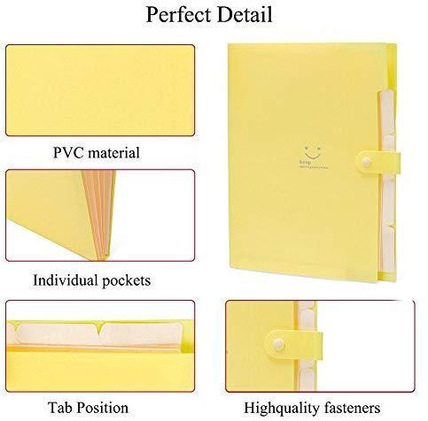 Expanding File Folder Letter A4 Paper File Folder 5 Pockets Plastic Folder Document Organizer With Snap Closure for School And Office (Yellow)