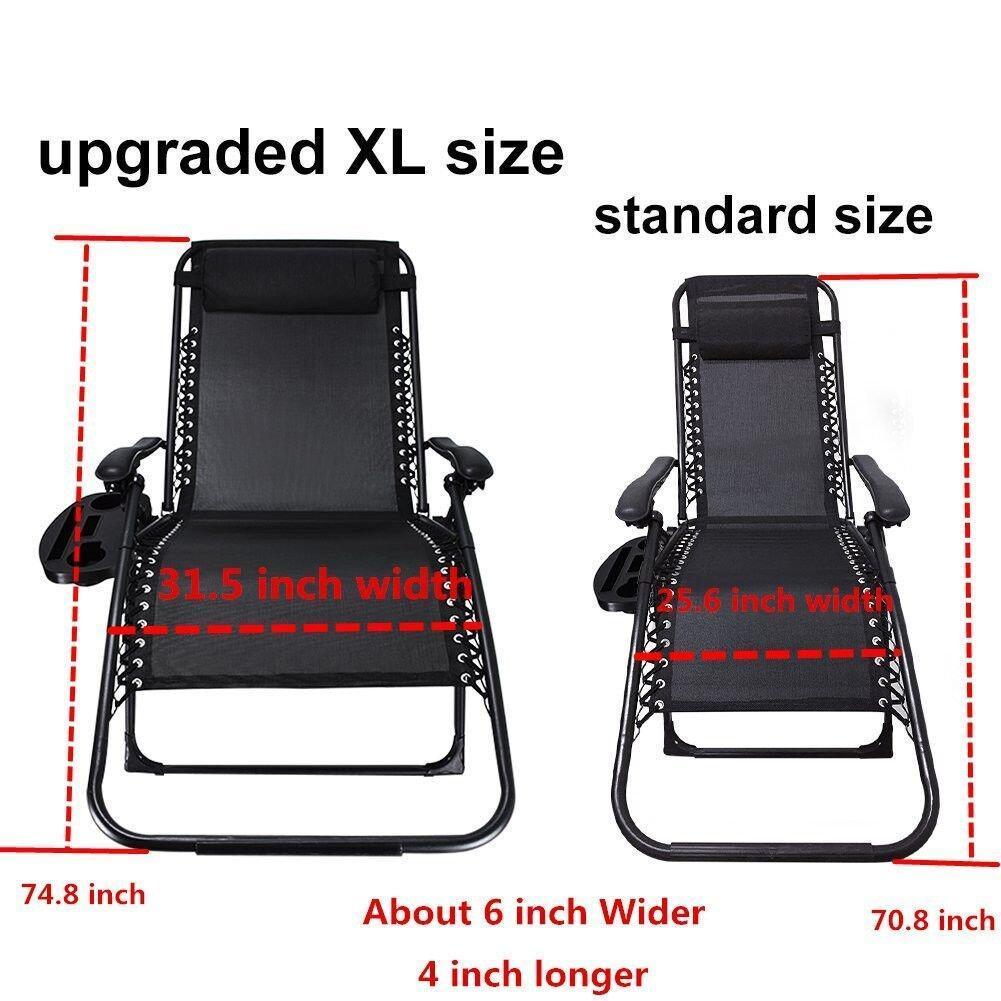 • [UPGRADED WEIGHT CAPACHCY ] : 2018 upgraded XL zero gravity chair supports 430 lbs, (standard size 250-300lbs); powder-coated Square frame reduce rusting and more security