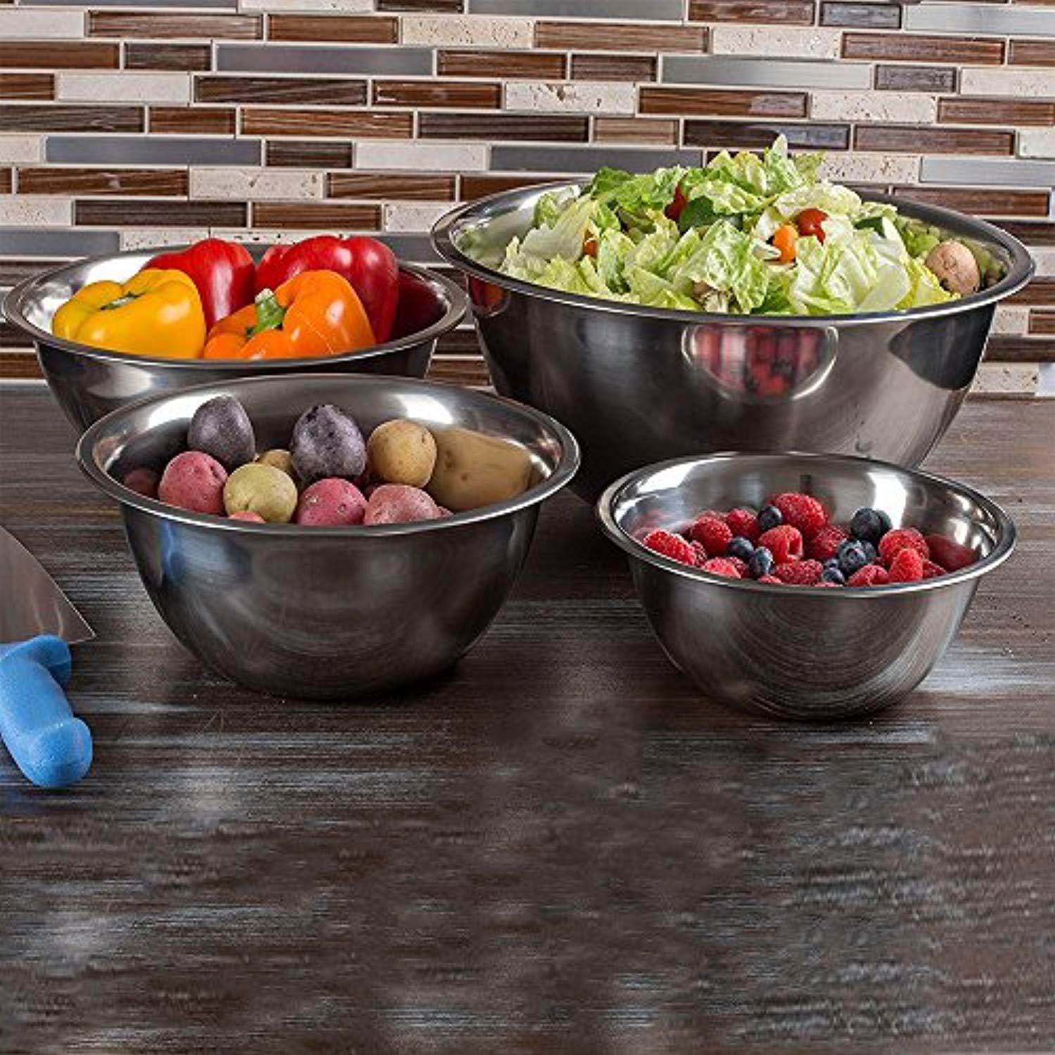 • These bowls are deep, preventing splatter and spills. Great for easy meal prep and quick cleanup. These bowls feature a flat bottom on each of the bowls to ensure that they stay put and balanced while preparing, mixing, whisking, and beating