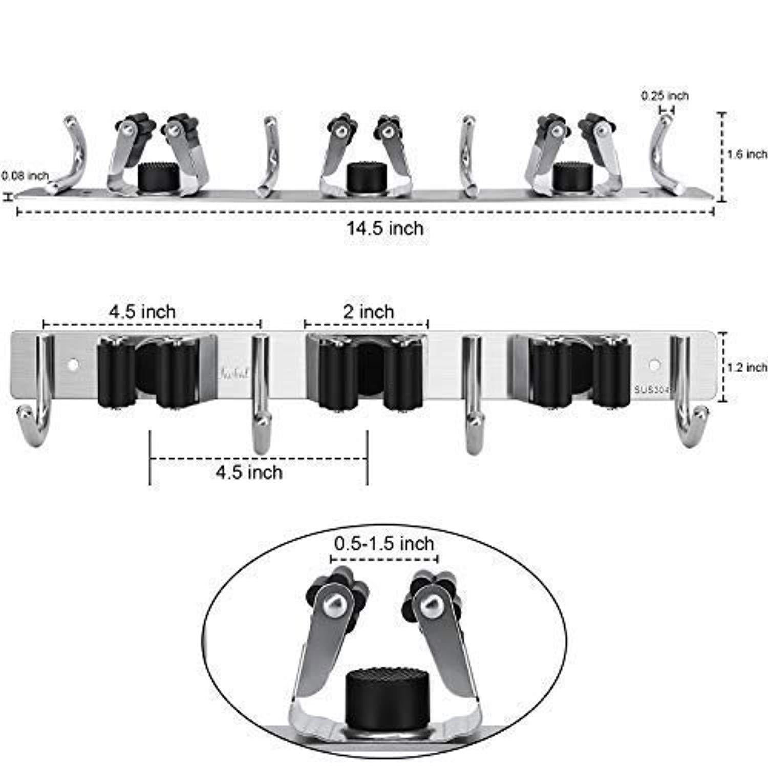 • 🎁【INDOORS & OUTDOORS 】- Tidy up your broom, mop, rakes, tools and more! Perfect for the kitchen, closet, garage, office, great for commercial use, and thanks to the weatherproof design, this holder even works outdoors or on the shed for your garden tools!