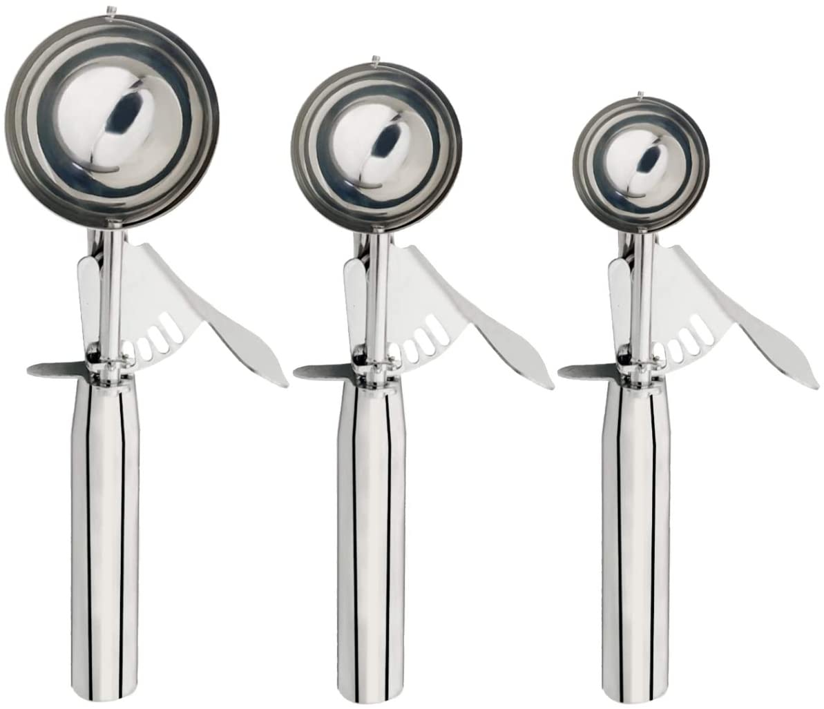 • MULTIPLE USES, IDEAL KITCHEN TRIGGER SCOOP: The ice cream scoop set can be used to make beautifully rounded balls of cookies, meatballs, cupcake, ice cream, sorbet, melon ball, and more. They can be used as cookie scoop, cupcake scoop, meatball scoop, muffin scooper, ice-cream scoop, and also melon baller scoop, endless uses.