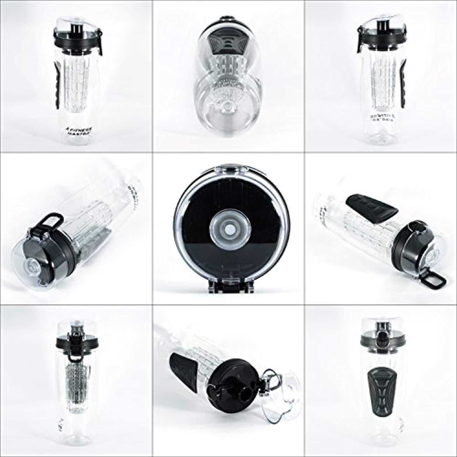 Fitness Master Fruit Infuser Water Bottle (32 Ounce) - BPA Free Plastic, Leak Proof, Lockable Lid and Rubber Grips on Infusion Bottles