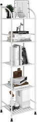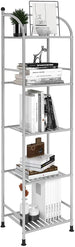 • 1. MULTIFUNCTIONAL STORAGE RACK: This 5-tier space saver can hold towels, bathrobes, shower gel, soap and more bath accessories to keep your bathroom away from mess. The storage rack also can be used to help kitchen, living room, hallway, balcony organization; it works great for food containers, canned food, spices, laundry supplies, pet supplies, potted plants,books, photos frames, clothes and more.