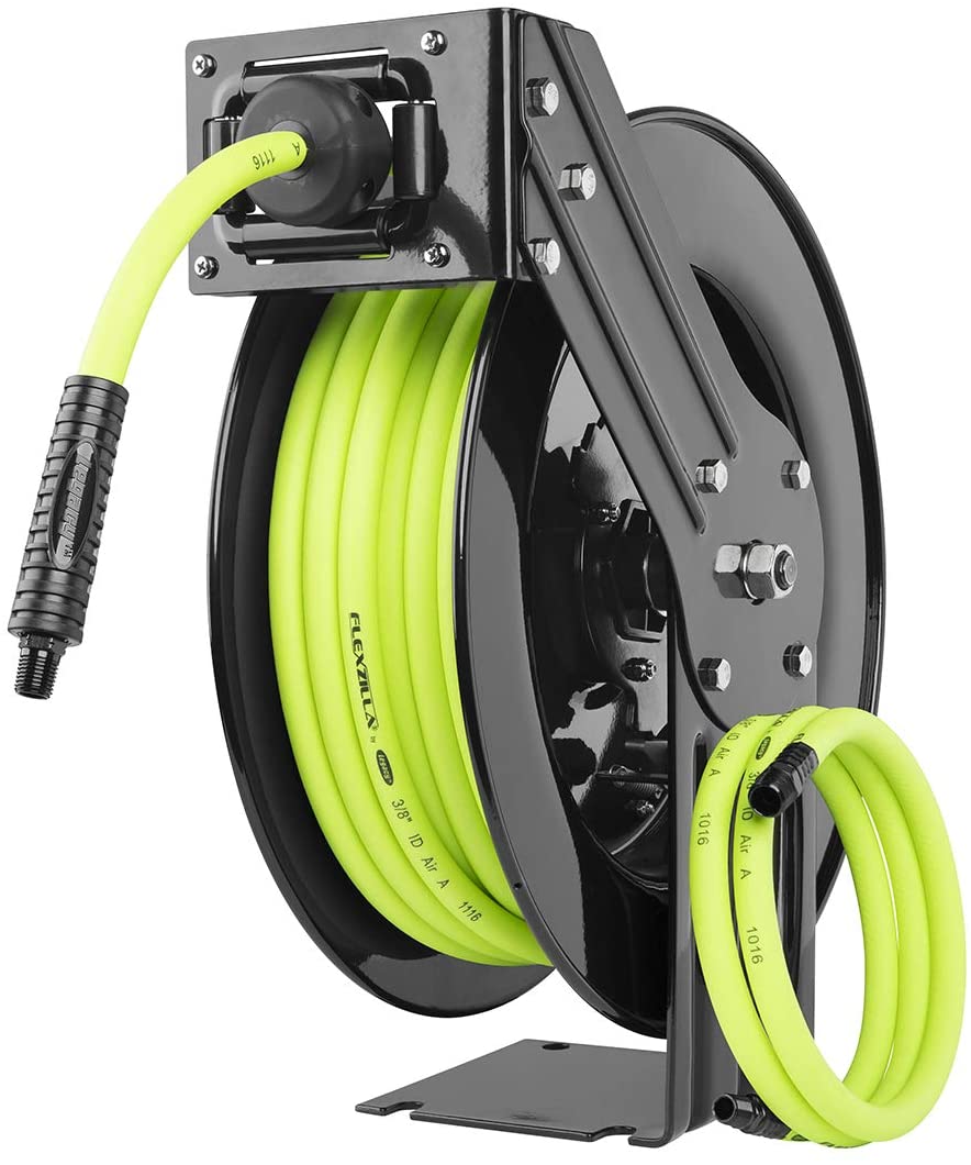 Flexzilla Open Face Retractable Air Hose Reel, 3/8 in. x 50 ft., Heavy Duty, Lightweight, Hybrid, ZillaGreen - L8611FZ