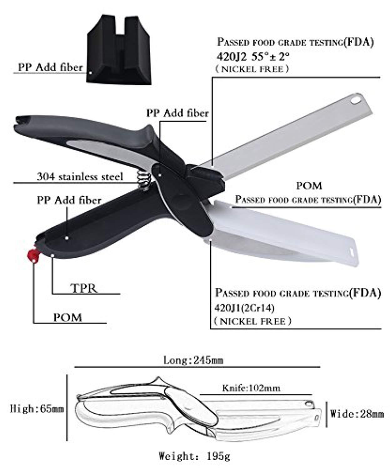 • Suitable for all types of slicing equipment. Use a food chopper to cut any product. A small kitchen utensil replaces the entire set of knives and chopping boards. Use these unique kitchen gadgets to replace your food choppers, food scissors, vegetable slicers and fruit knives and other kitchen eqiupment