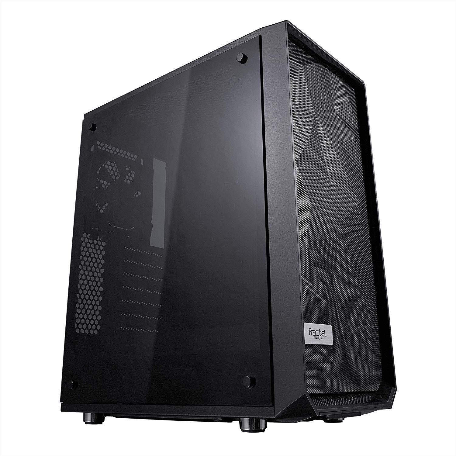 Fractal Design Meshify C - Compact Computer Case - High Performance Airflow/Cooling - 2X Fans Included - PSU Shroud - Modular Interior - Water-Cooling Ready - USB3.0 - Tempered Glass Light - Blackout