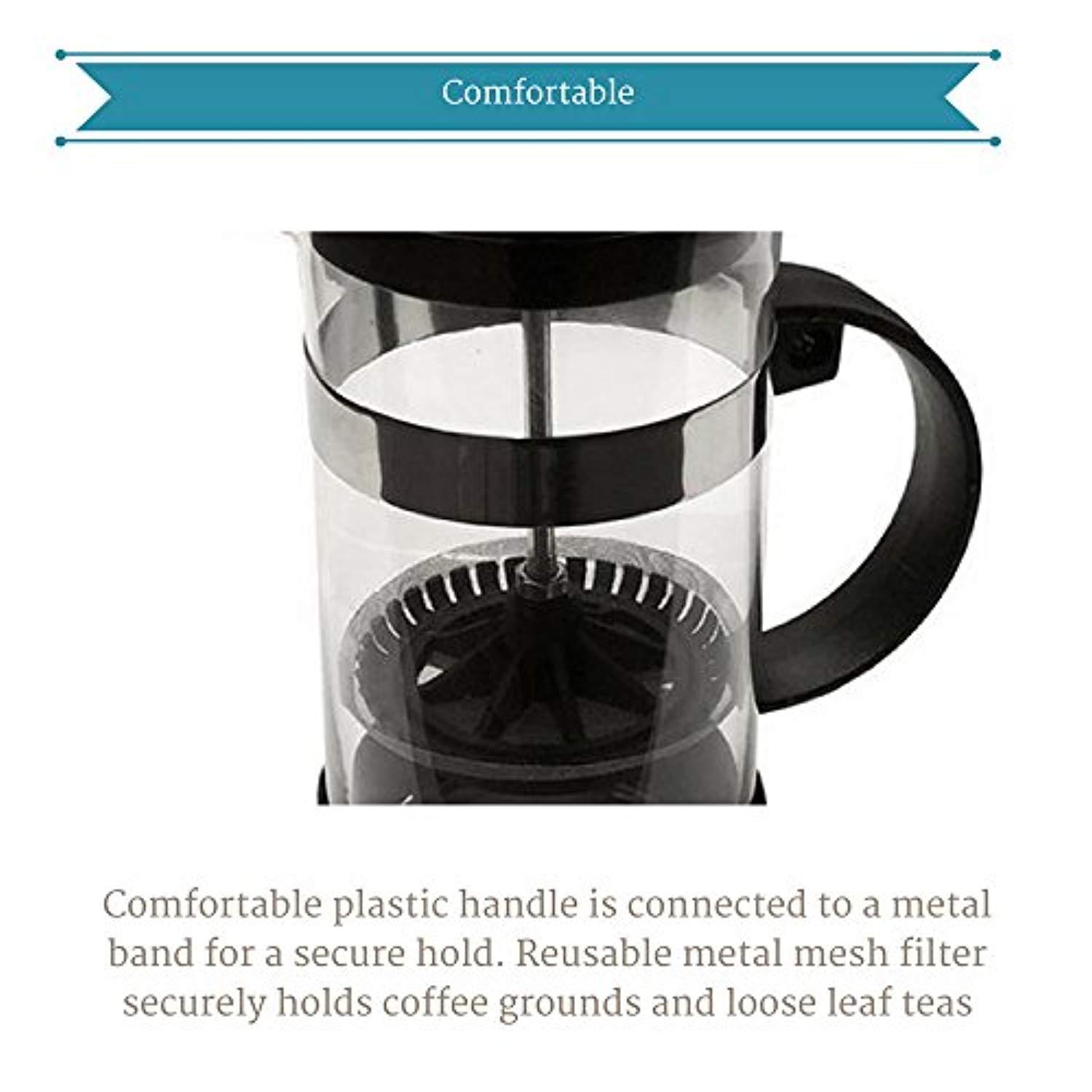 • Reusable metal mesh filter securely holds coffee grounds and loose leaf teas