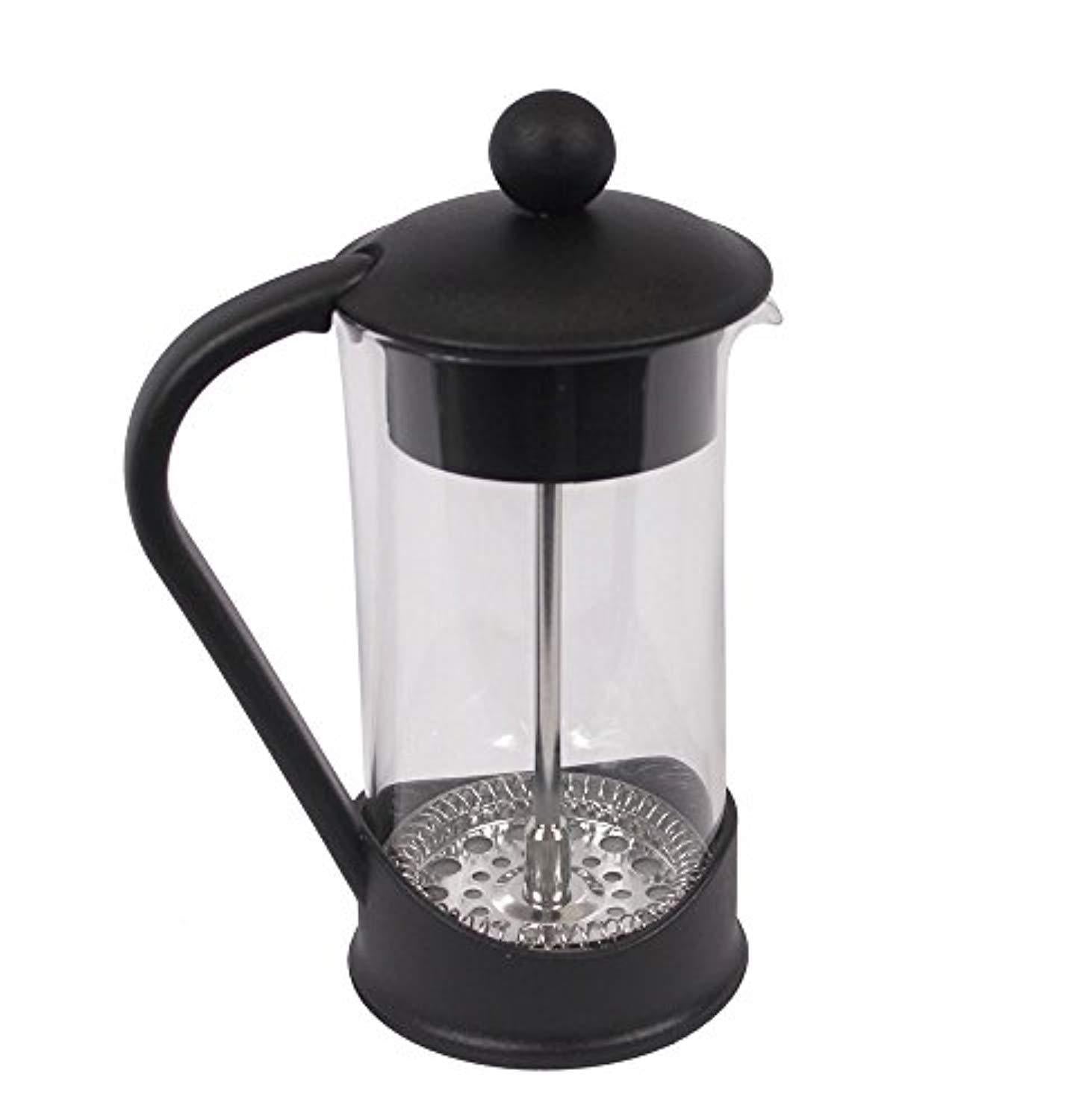 • STYLISH AND DURABLE DESIGN: Features a shatter-resistant carafe, fine stainless steel mesh screen, and comfortable handle design. When breakfast is over, just rinse out the grounds and toss your disassembled French Press into the dishwasher for easy clean up. Measures 6.75 X 4.5 X 3 inches and has a 2 (two) cup/12 fluid ounce/0.4 liter capacity