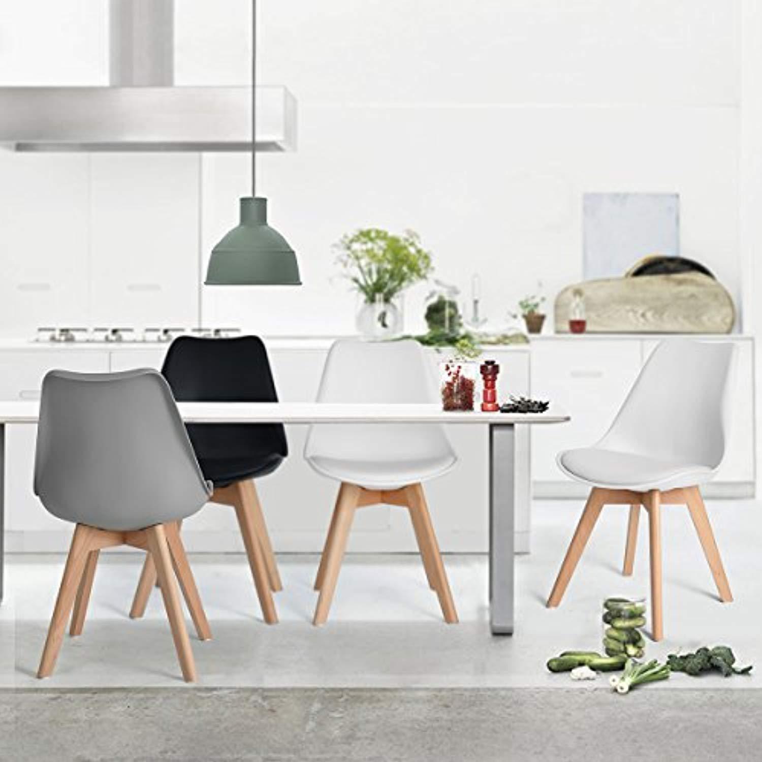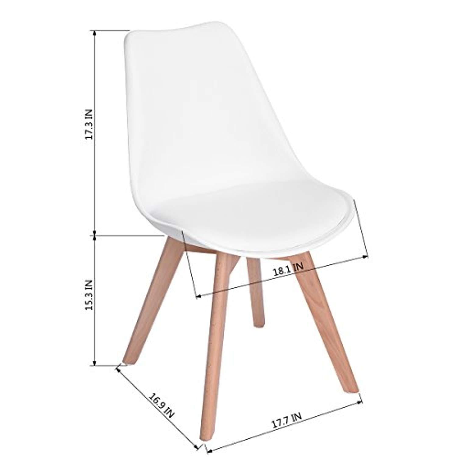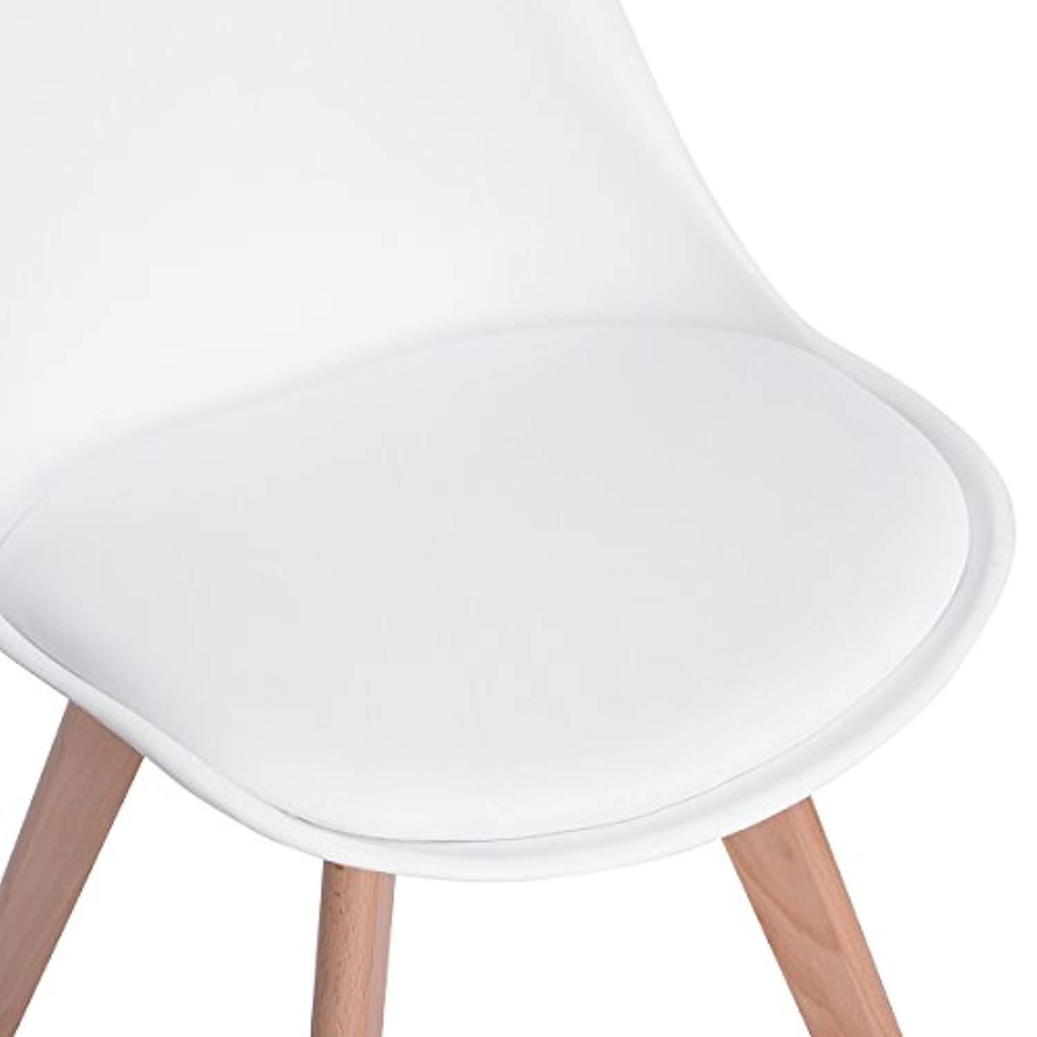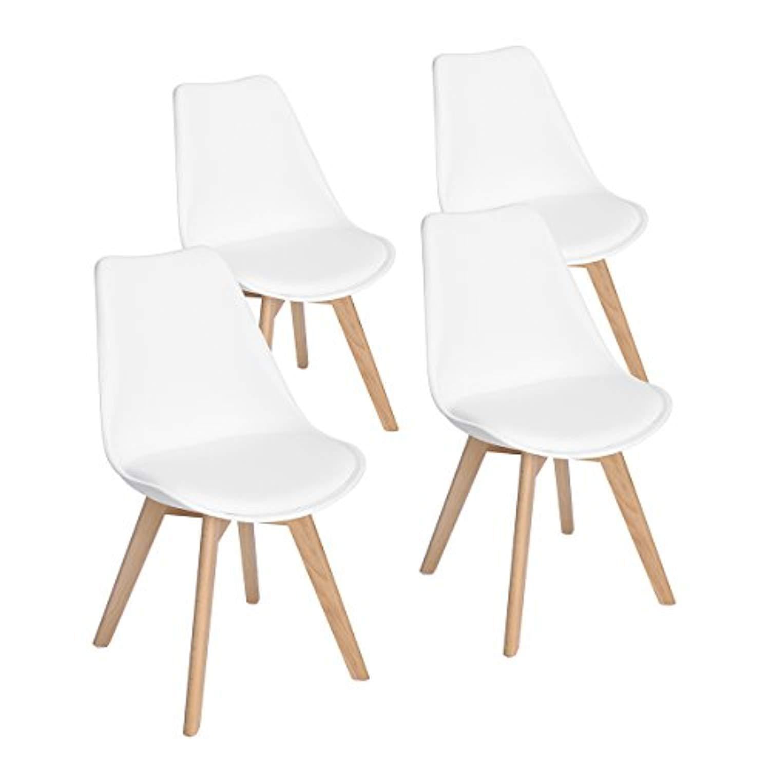 FurnitureR Set of 4 Dining Chair Tulip Natural Solid Wood Legs Design with Cushioned Pad Armless Lounge Chairs Kitchen White