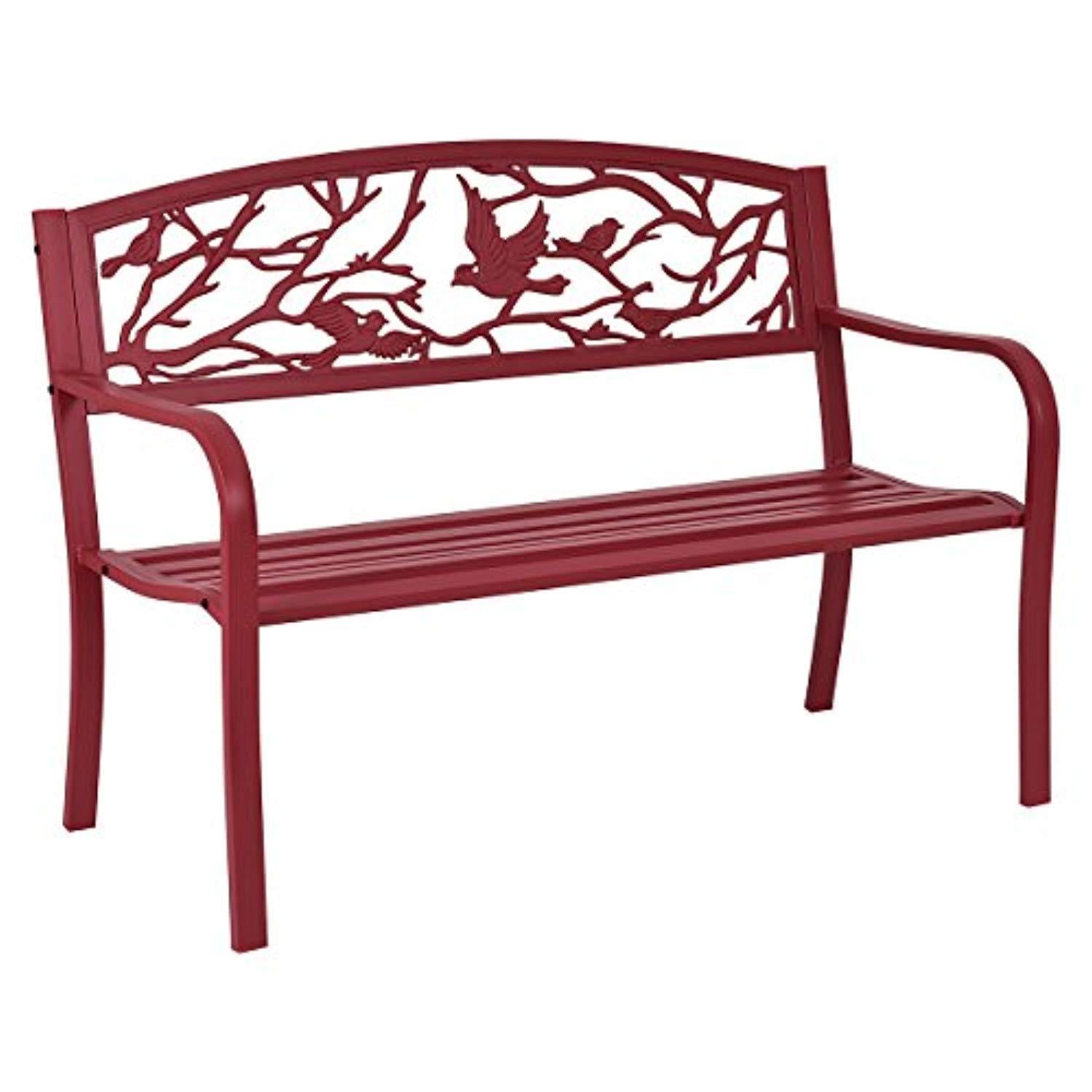 Giantex Patio Garden Bench Park Yard Outdoor Furniture Cast Iron Porch Chair (Red)