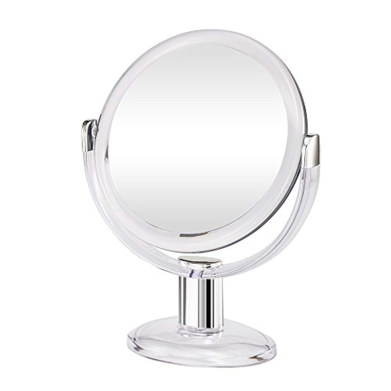 This Tabletop Double sided Makeup mirror features an 10X Magnification distortion free glass on one side and 1x reverse on the other side, which allows 360 Degree Rotatio. And the lightweight designs for tabletop or handheld use. The 5.8-inch size mirror helps you to see the tiniest detail.