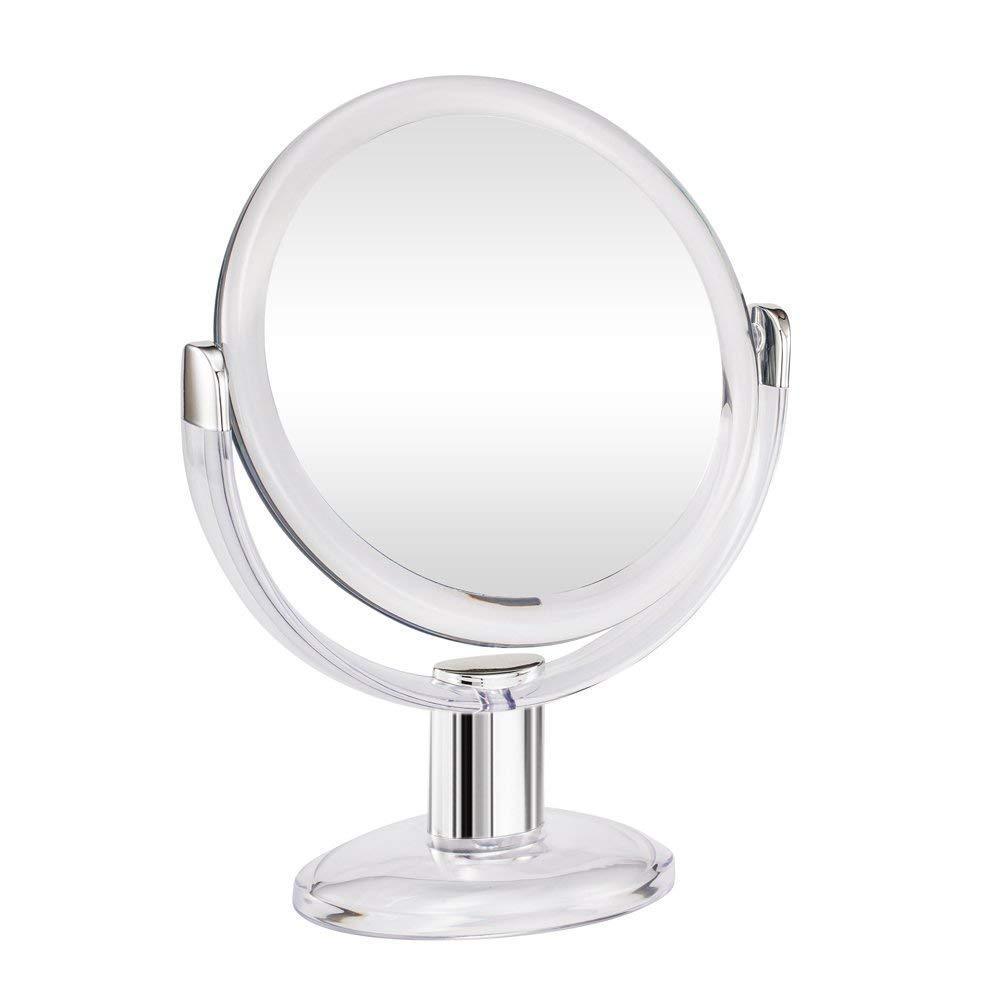 This Tabletop Double sided Makeup mirror features an 10X Magnification distortion free glass on one side and 1x reverse on the other side, which allows 360 Degree Rotatio. And the lightweight designs for tabletop or handheld use. The 5.8-inch size mirror helps you to see the tiniest detail.