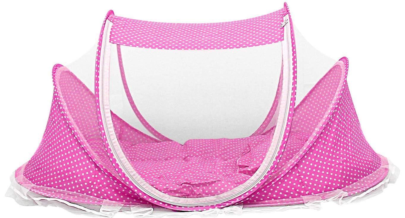 • INCLUDES - Includes a mosquito tent, pillow, mattress, music box and carrying mesh bag. Soft padded pillow and mattress designed for babies for maximum comfort. Music box helps get baby’s attention and sing baby into sleep.
