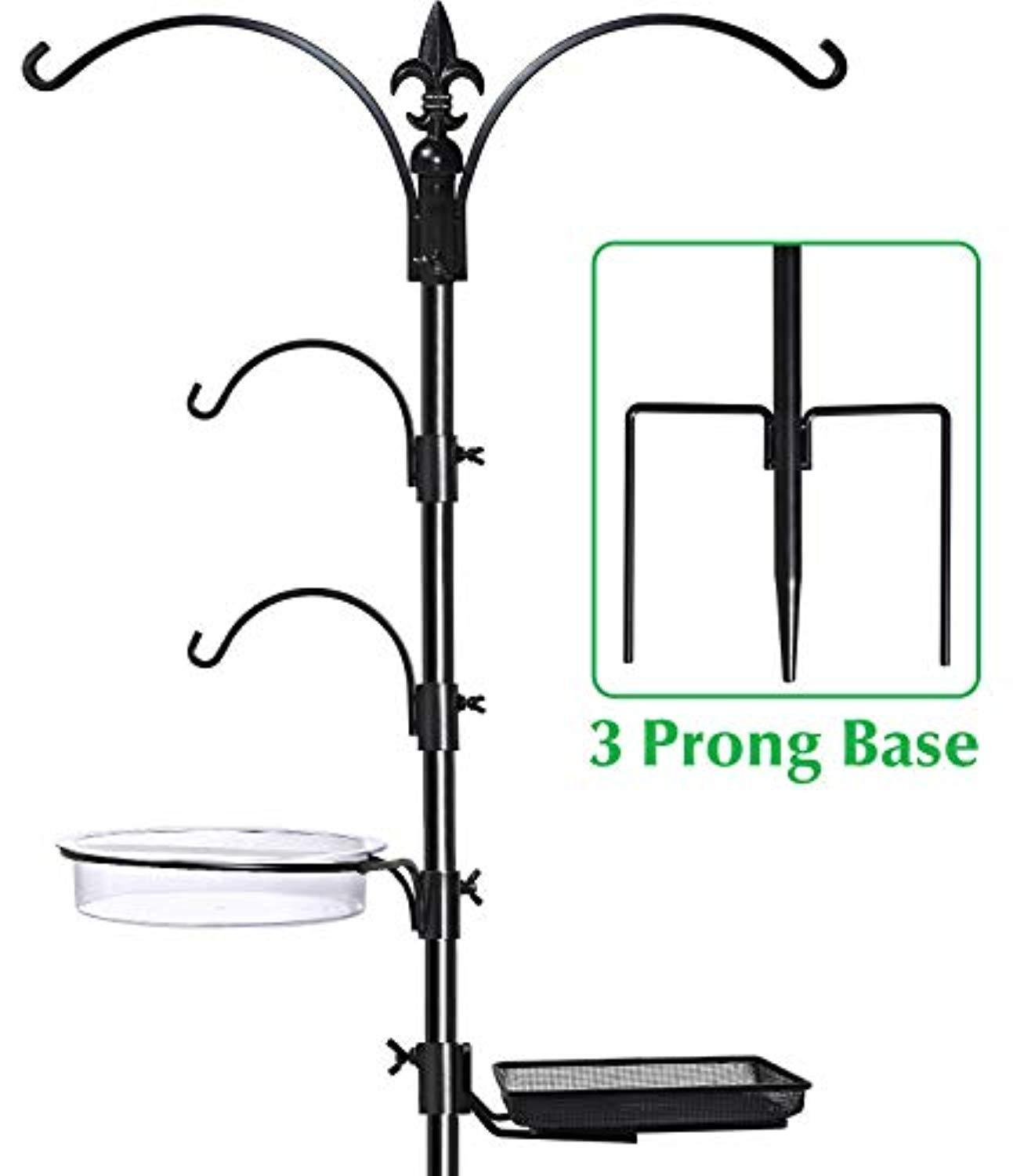 • PREMIUM DESIGN: Rust resistant, heavy duty sturdy steel construction. Quality accessories, adjustable attachments, pole rod and hardware. Easily self adjust component parts to any desired location on the post by loosening and tightening wing nuts by hand. No tools required! Forked base prong adds stability & permits easy placement. Step down on the stake to anchor and plant into the floor. Mesh tray & water bowl detach for easy cleaning. Squirrel baffle compatible. *BIRD FEEDERS SOLD SEPERATELY*