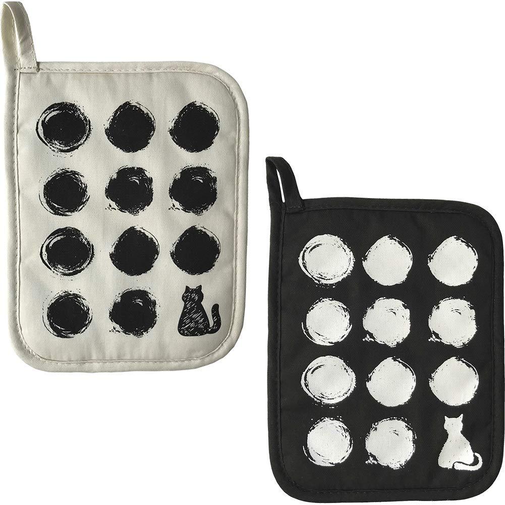 GREVY Cotton Pot Holders with Cats on Them (Black and Ivory)