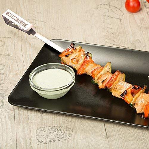 • ♨️Made from SUPERIOR QUALITY, FOOD-SAFE STAINLESS STEEL, these badass 14.5-inch grilling skewers are durable, reusable, and corrosion-resistant. Unlike wood and bamboo skewers, they don't require soaking, and they won't burn to a cinder during cooking. Simply wash them by hand or in the dishwasher before putting them away for your next cookout.
