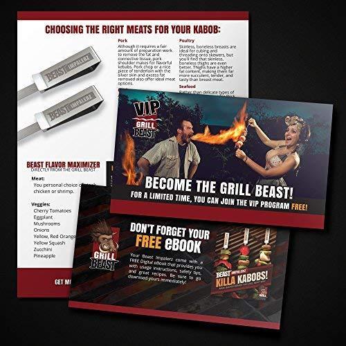 • ♨️Includes a FULL MONEY-BACK GUARANTEE and LIFETIME WARRANTY to minimize your risk and allow you to purchase with confidence. Beast Impalerz also come with a FREE EBOOK full of smart tips and tasty recipes for making perfect kebabs every time.