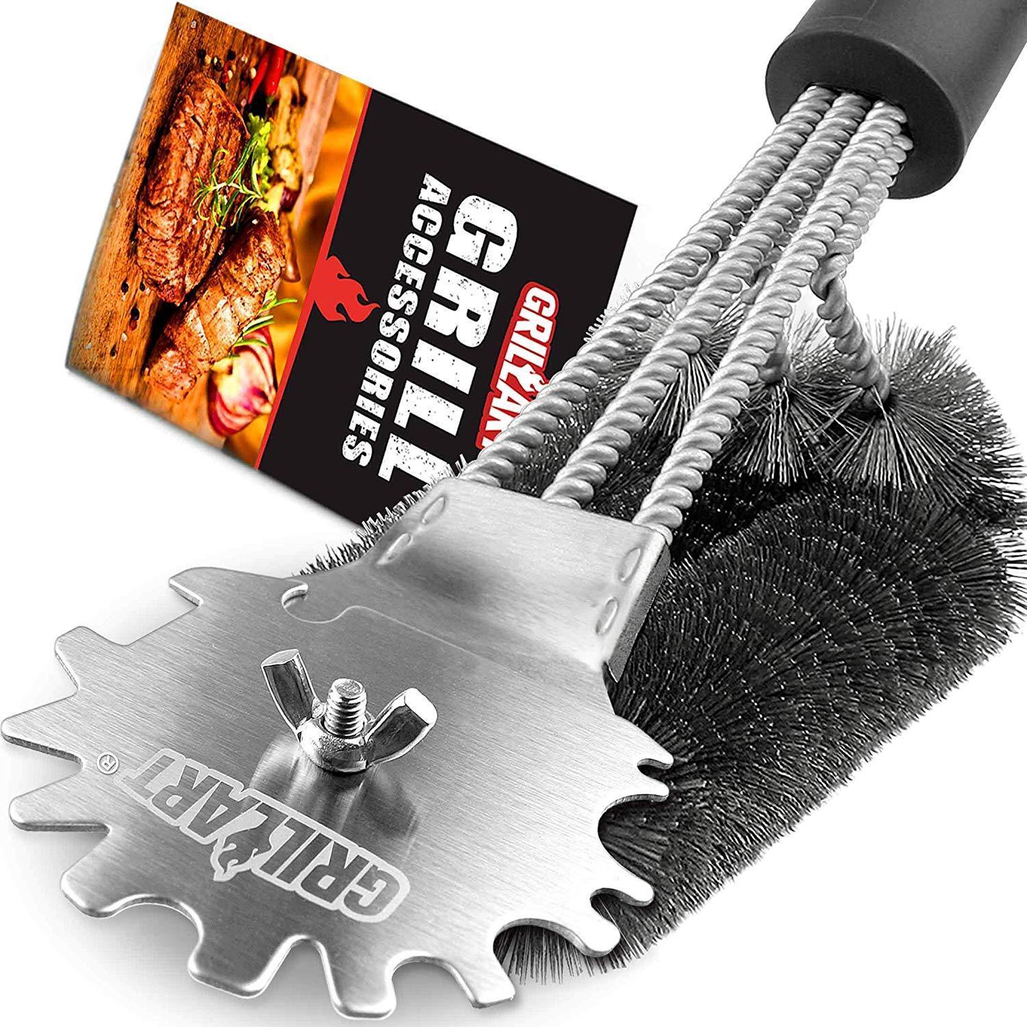 Grill Brush Scraper Universal Fit - Adjustable BBQ Grill Accessories Cleaning Kit - 12 Grooves Safe 18" Stainless Steel Barbecue Grill Cleaner Wizard Tools Weber Gas/Charcoal Grilling Grates