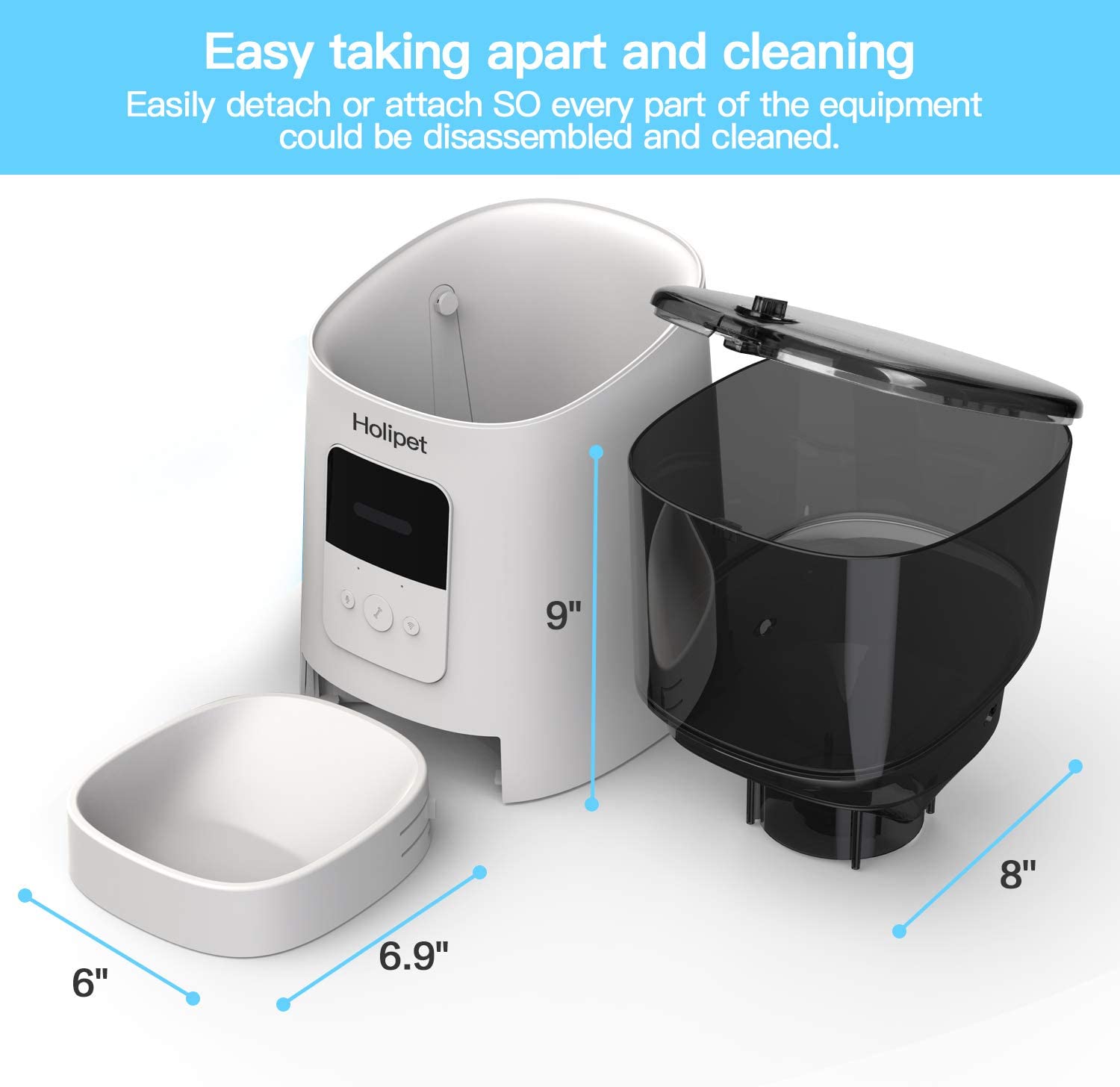 Holipet Automatic Cat Feeder WiFi Enable Smart Pet Dog Food Dispenser App Control for Medium Small Pet Puppy Kitten,Voice Recorder Distribution Alarms, Portion Control (Pearl White)