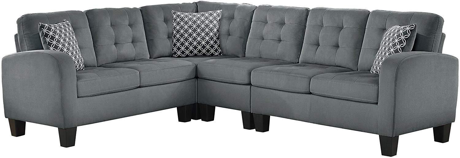 Homelegance Sinclair 84" x 107" Fabric Sectional Sofa, Gray