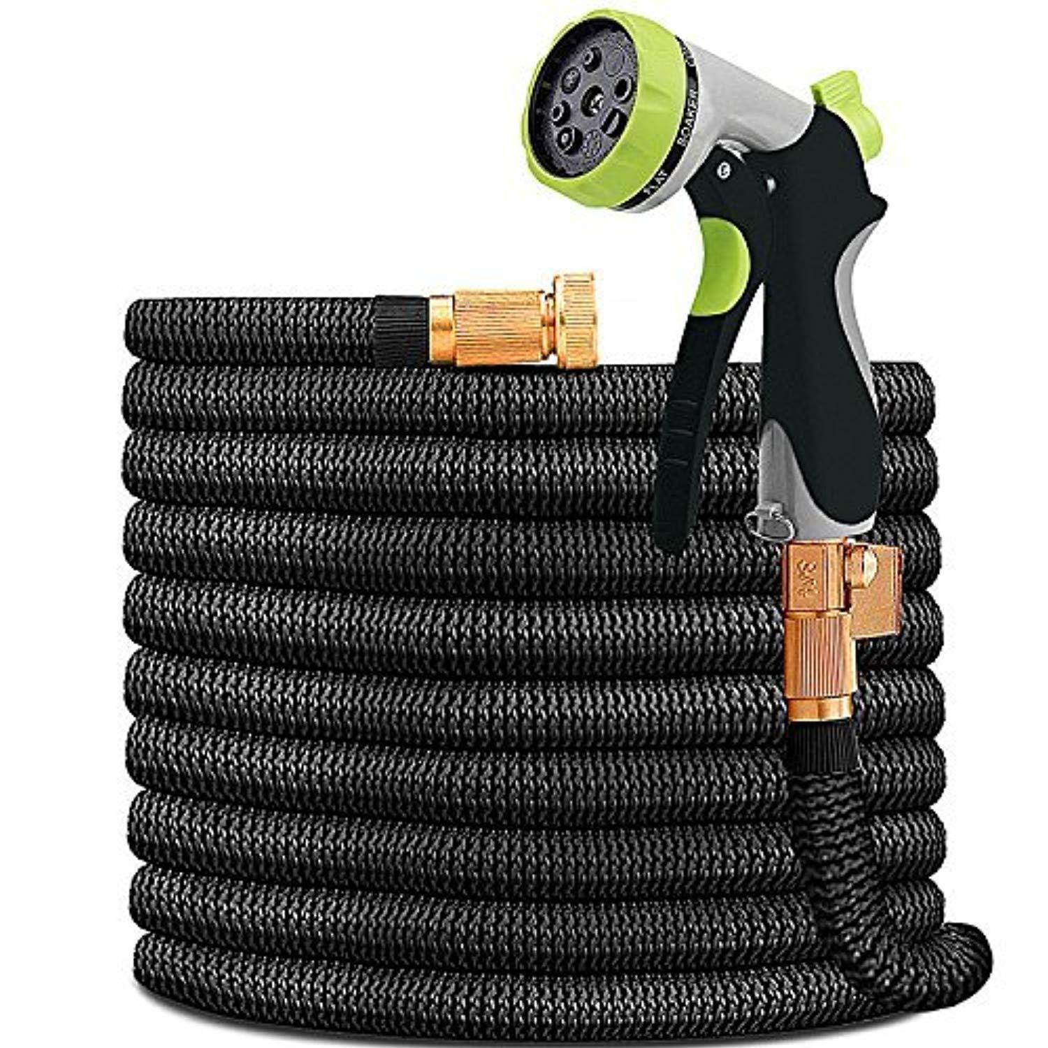 HYRIXDIRECT 50ft Garden Hose Expandable Water Hose Lightweight with Metal 8 Function Spray Nozzle Double Latex Core 3/4" Solid Brass Fittings Extra Strength Fabric Flexible Expanding Backyard Hose by Designum